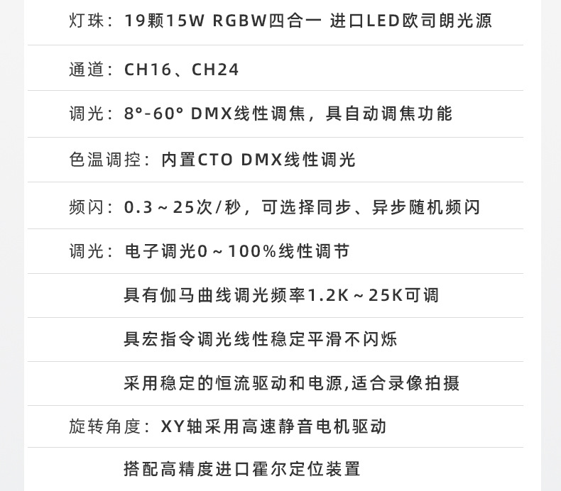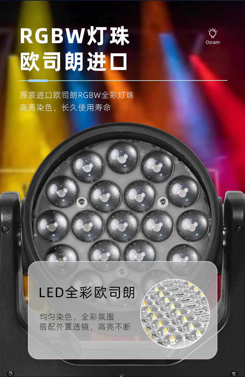 • 15W 포커싱 무빙 헤드 염색 램프 19개 [수입 램프 비즈]