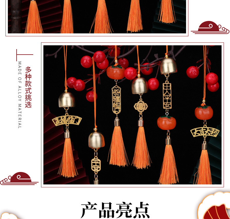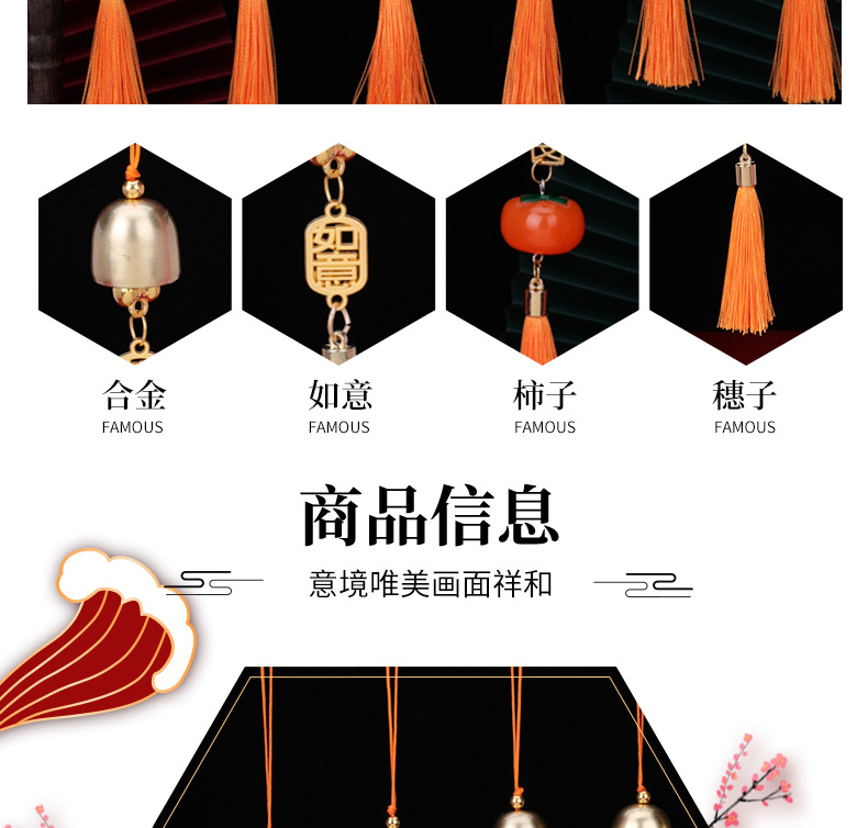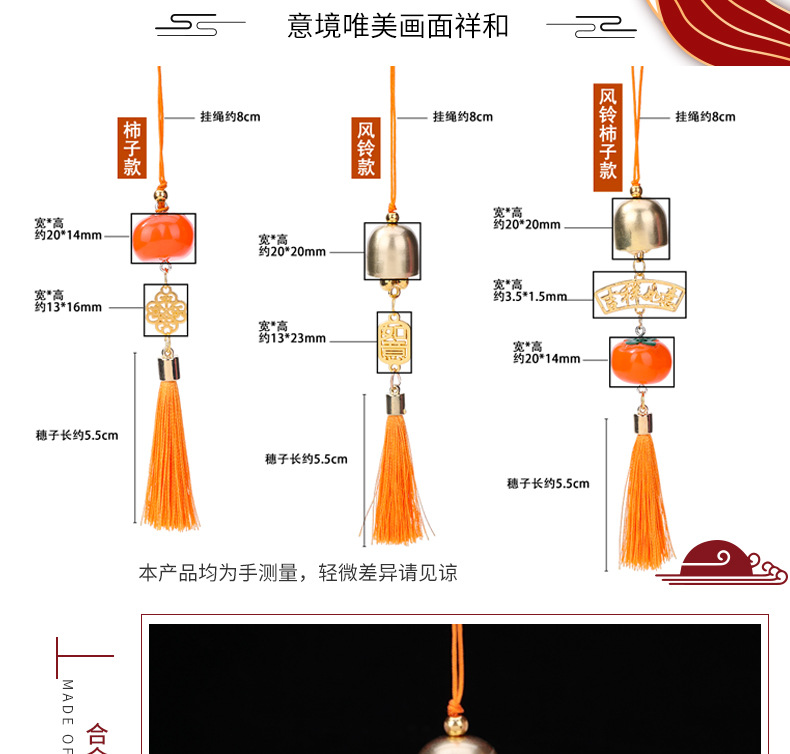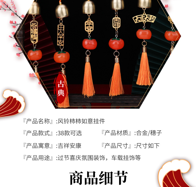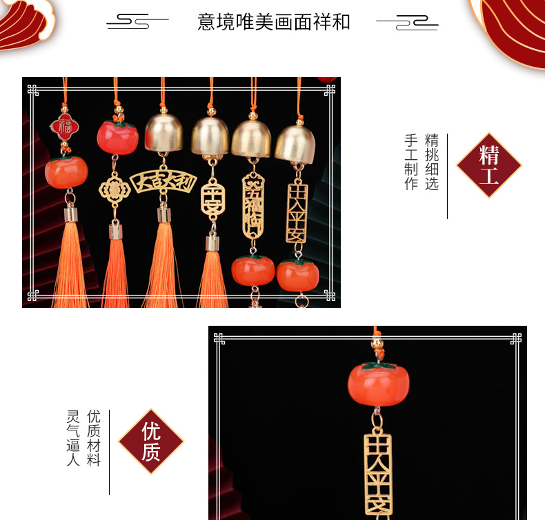 윈드 차임, 감 모양의 행운의 펜던트, 명절 장식, 중추절 펜던트 액세서리, 윈드 차임 DIY 장식품 재료 도매