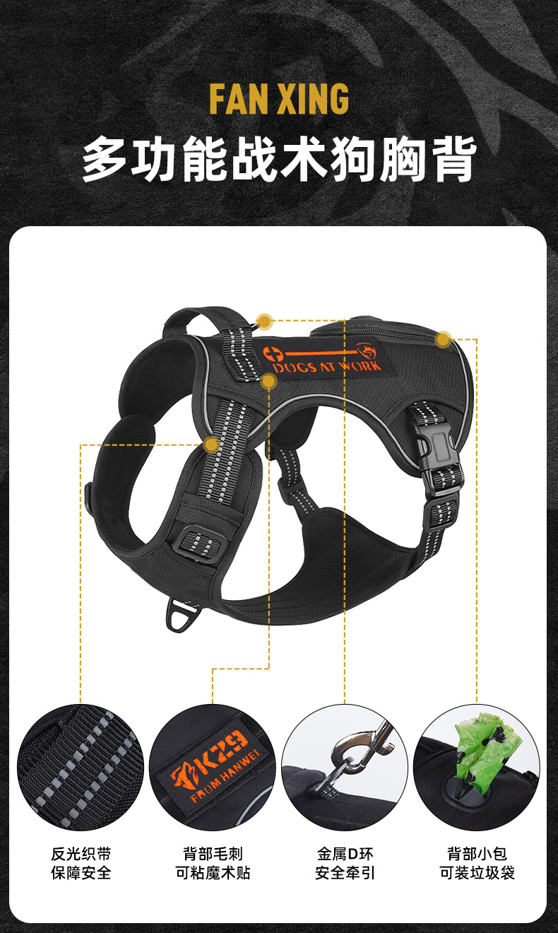 국경 간 새 개 견인 로프 조끼 개 가슴 끈 전술 개 가슴 뒤로 개 걷는 밧줄 재고 도매스토어 가기