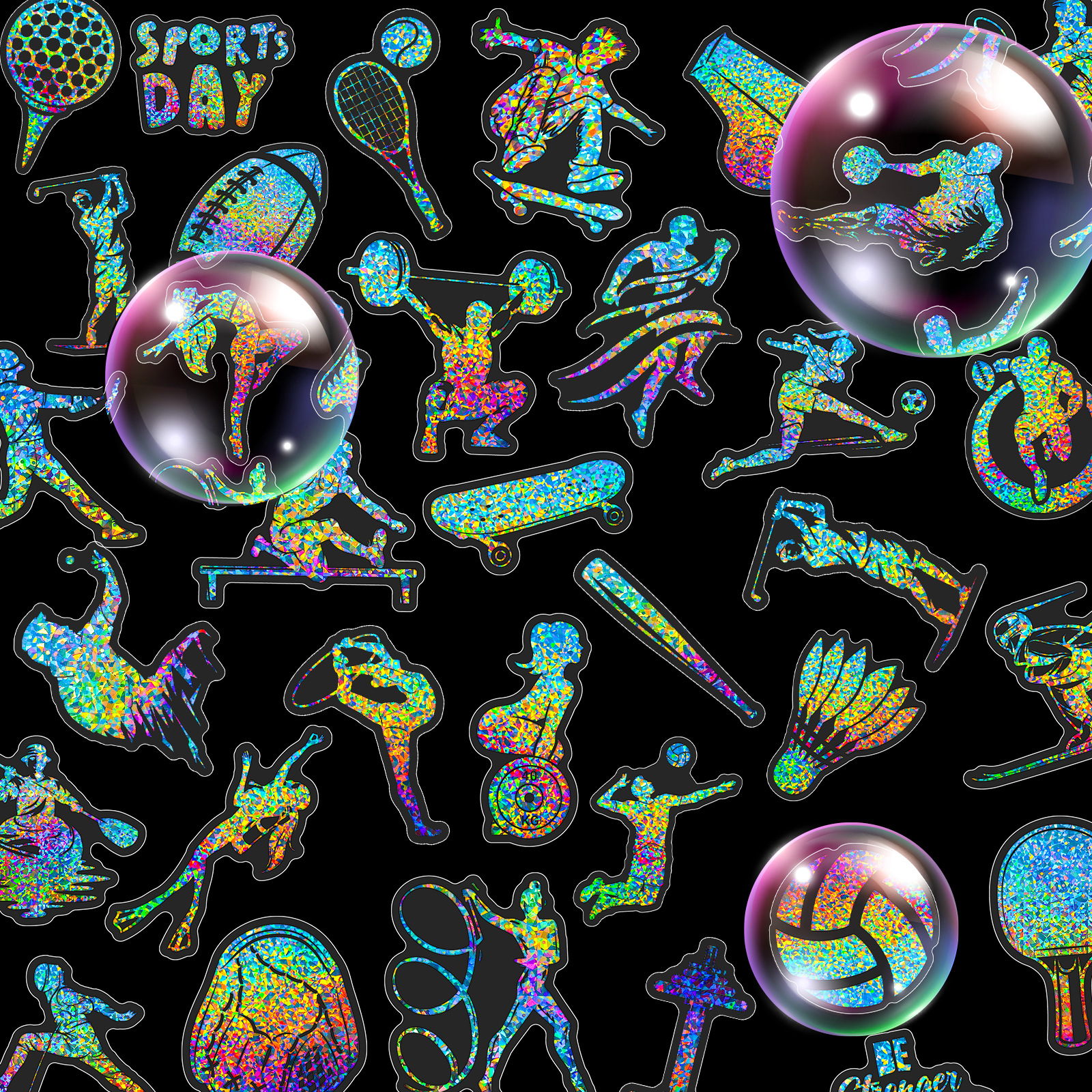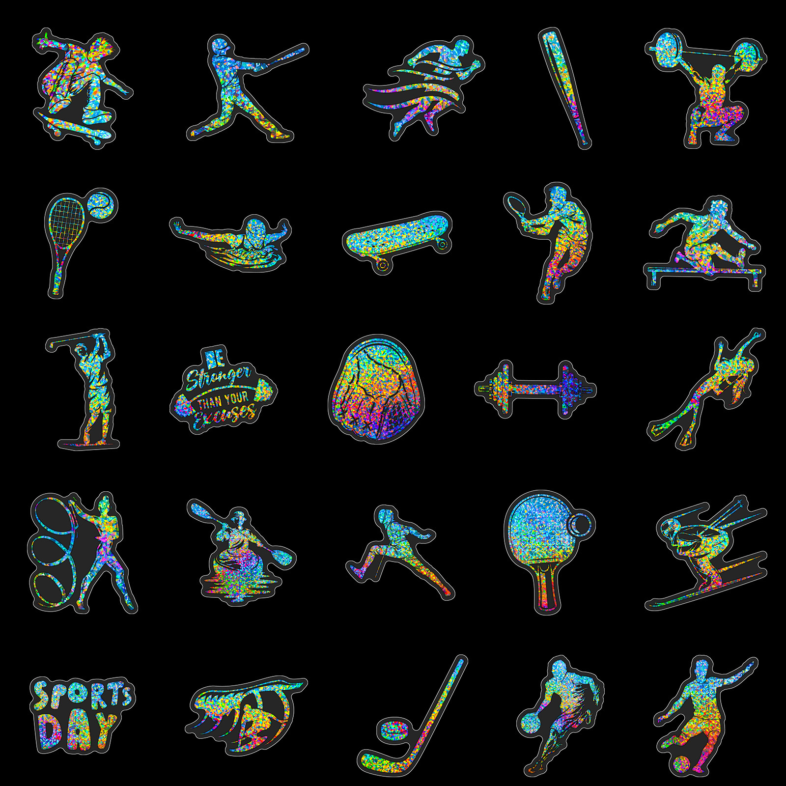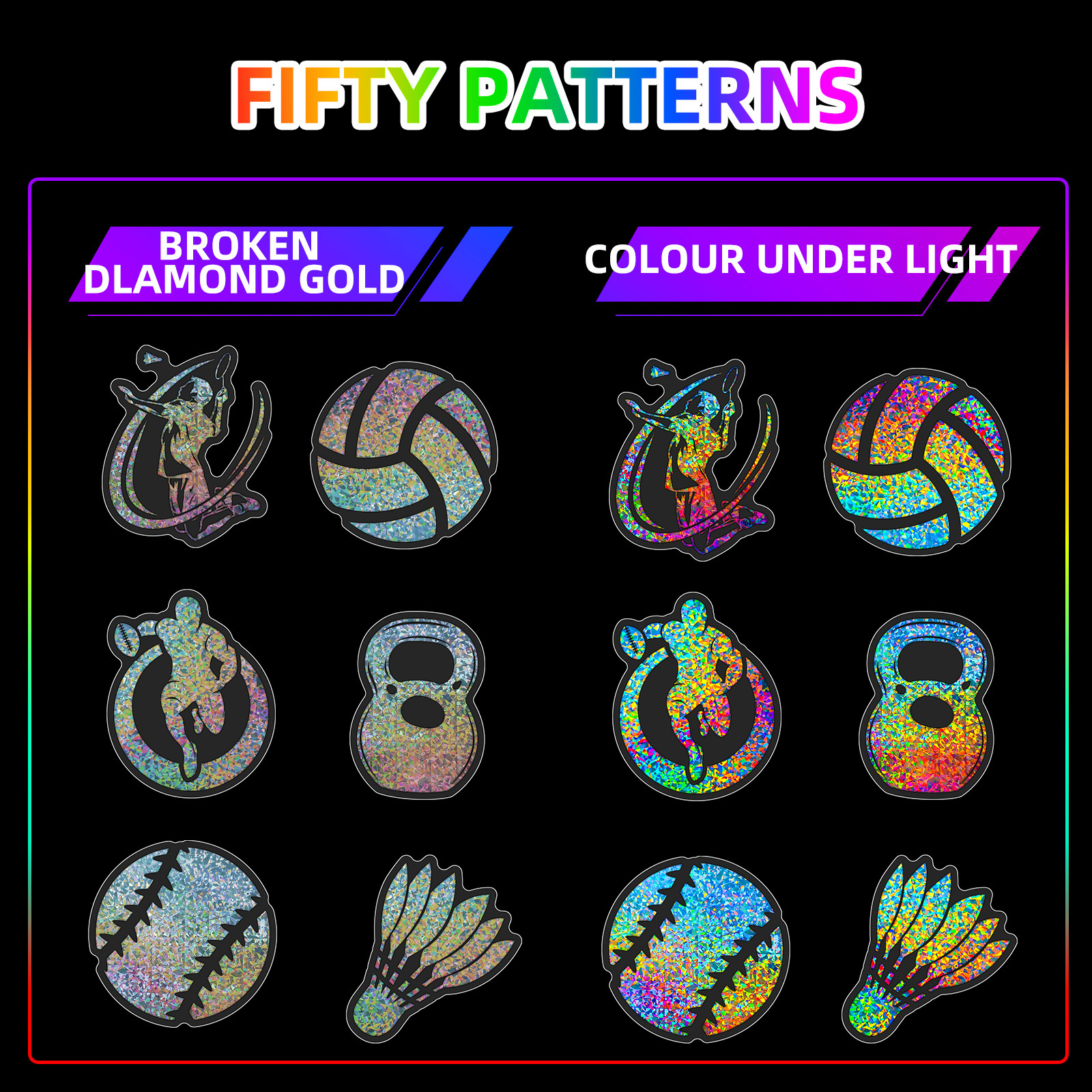 행복한 스포츠 레이저 장식 스티커 50 조각 아마존 스포츠 스타일 건강 장식 눈부신 레이저 투명 스티커스토어 가기