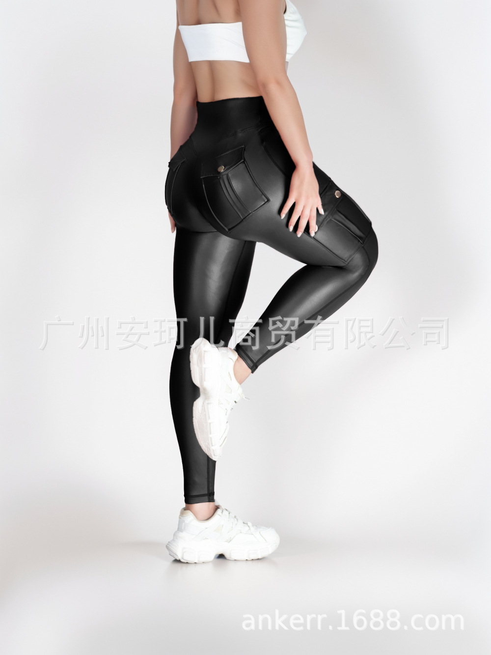 재고 브로케이드 양면-6 사이즈 유럽 및 미국 포켓 작업복 P 팬츠 피트니스 바지 여성의 높은 탄성 타이트 요가 바지 빠른 건조 달리기