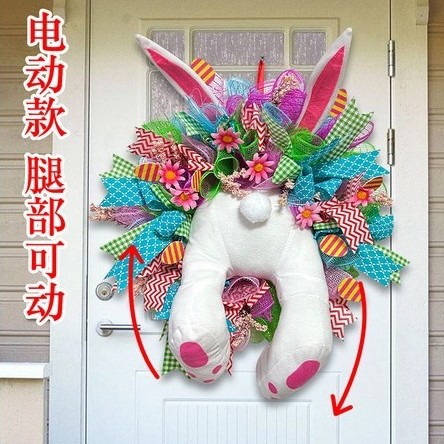 2024 새로운 부활절 전기 토끼 화환 다리 움직일 수있는 야외 안뜰 벽 매달려 휴일 장식 소품스토어 가기