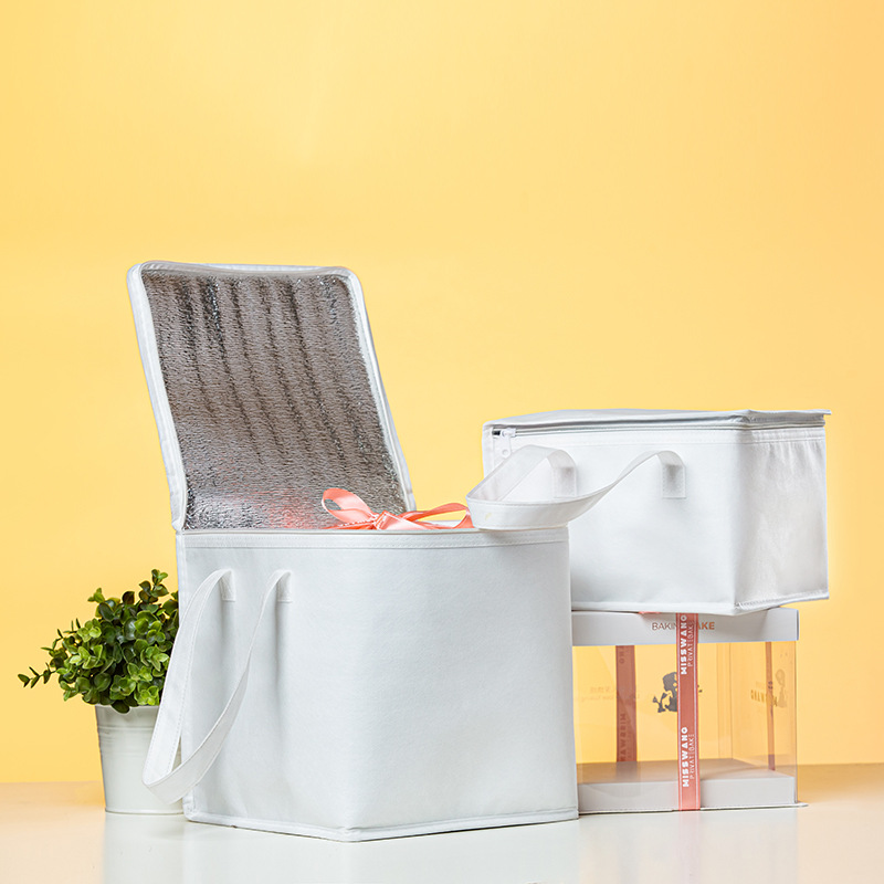 흰색 생일 케이크 단열 가방 두껍게 강화 된 베이킹 단열 가방 테이크 아웃 특수 알루미늄 호일 휴대용 냉장 가방