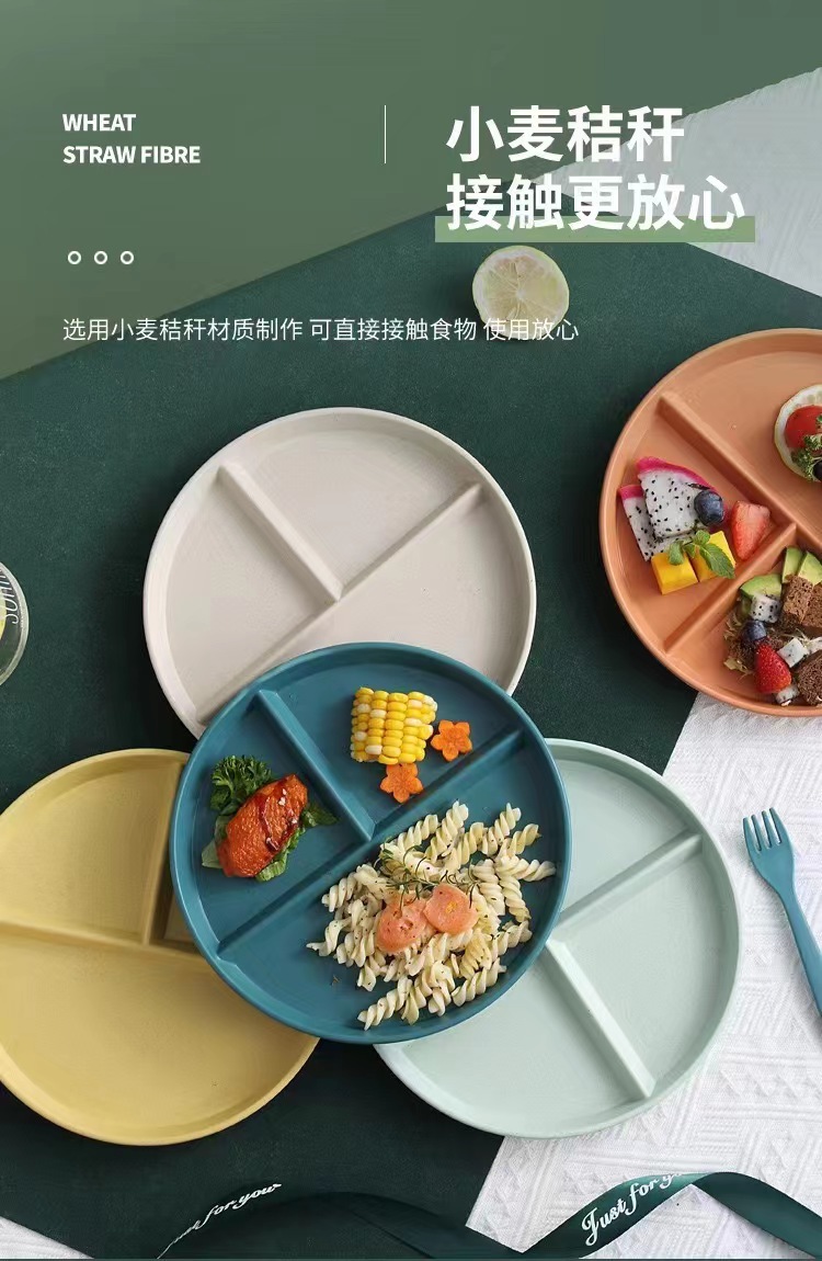 밀 밀짚 그리드 지방 감소 플레이트 1 인 식품 양적 식기 야외 가정용 과일 디저트 3 그리드 플레이트
