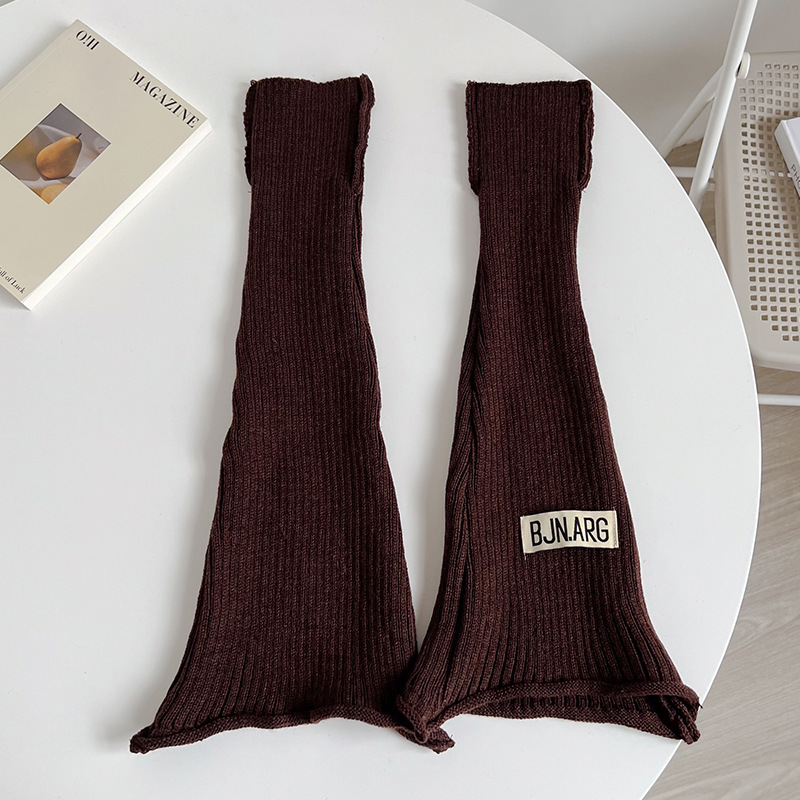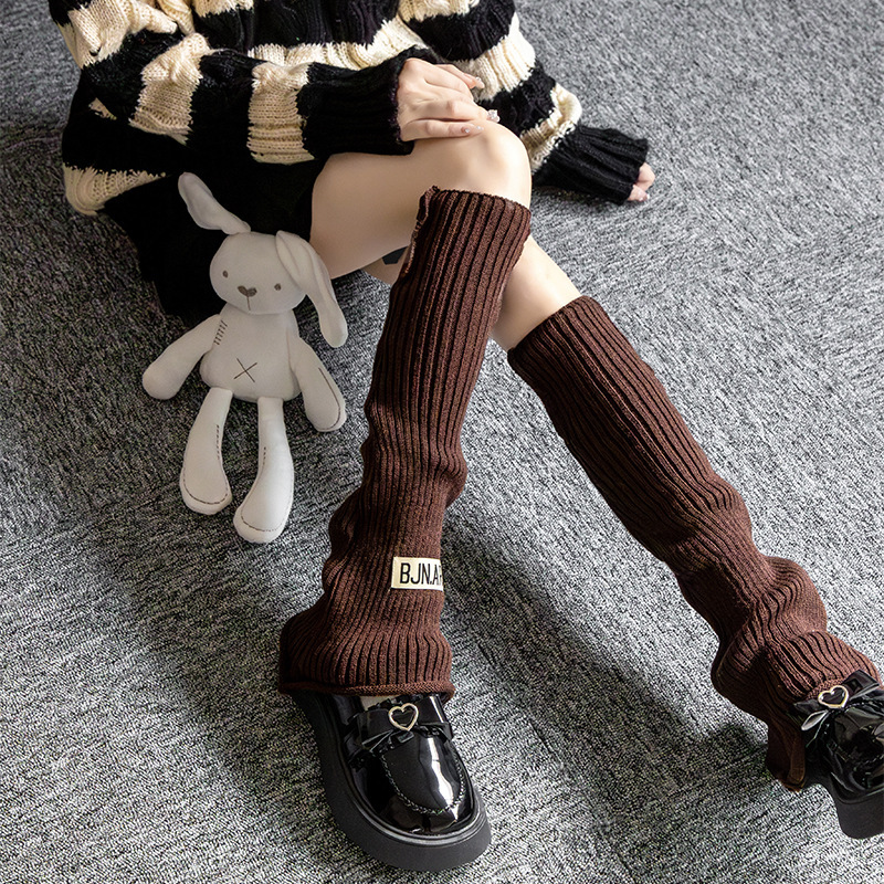 소녀들을위한 Maillard 스타일 양말 가을과 겨울 따뜻한 다리 커버 빈티지 혼 넓은 다리 트렌디 한 두꺼운 라인 천 라벨 니트 다리 커버