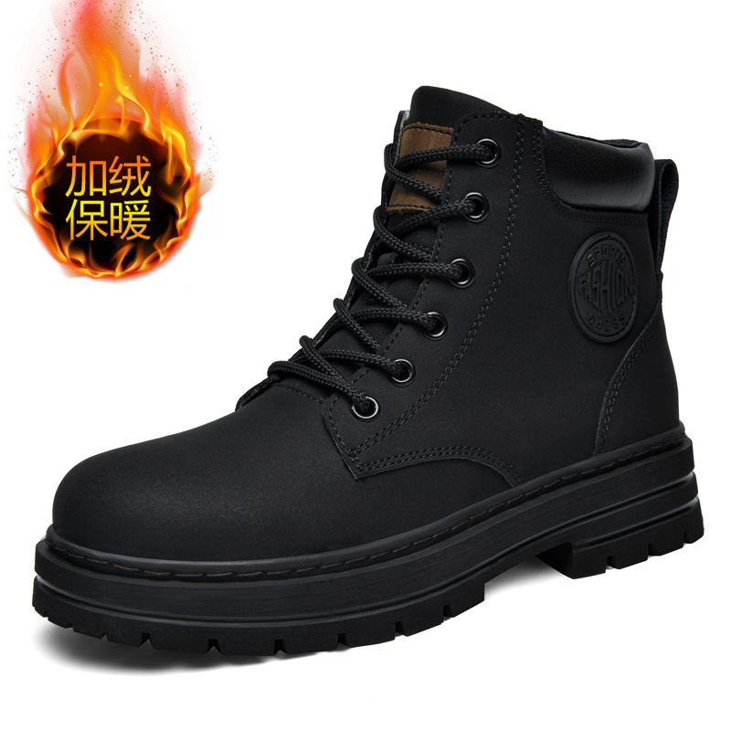 마틴 부츠 남성 미드 탑 바지 부츠 커플 오토바이 스노우 부츠 두꺼운 밑창 가죽 신발 하이 탑 영국 따뜻한 대황 부츠스토어 가기