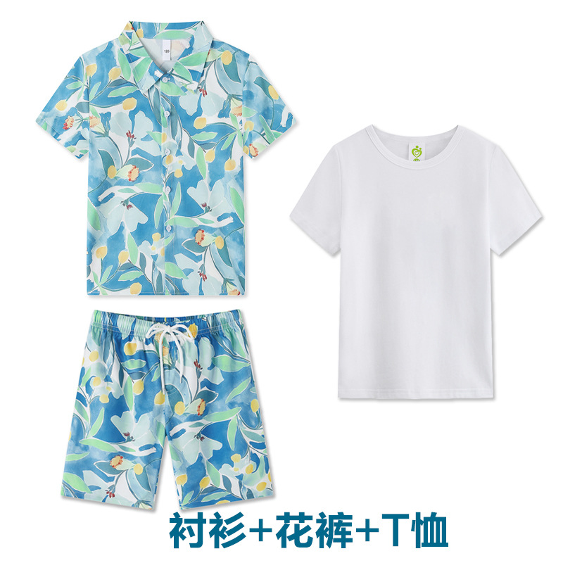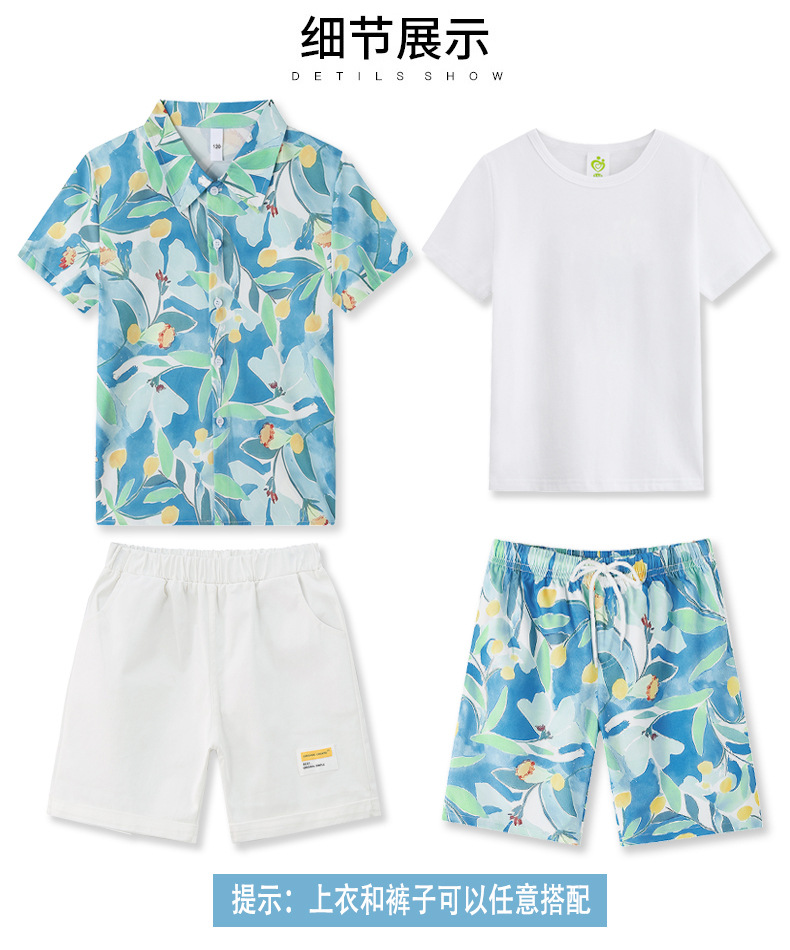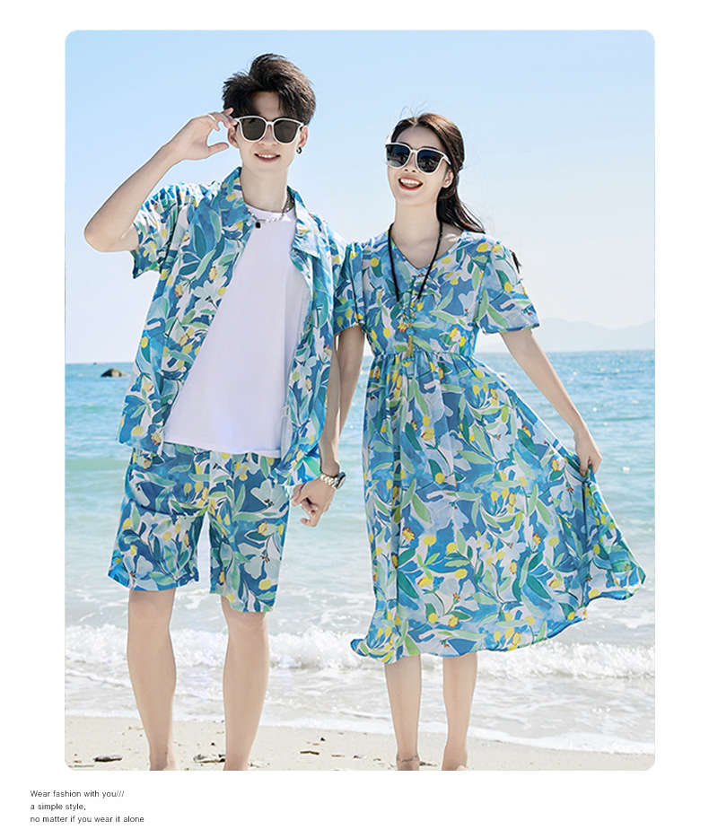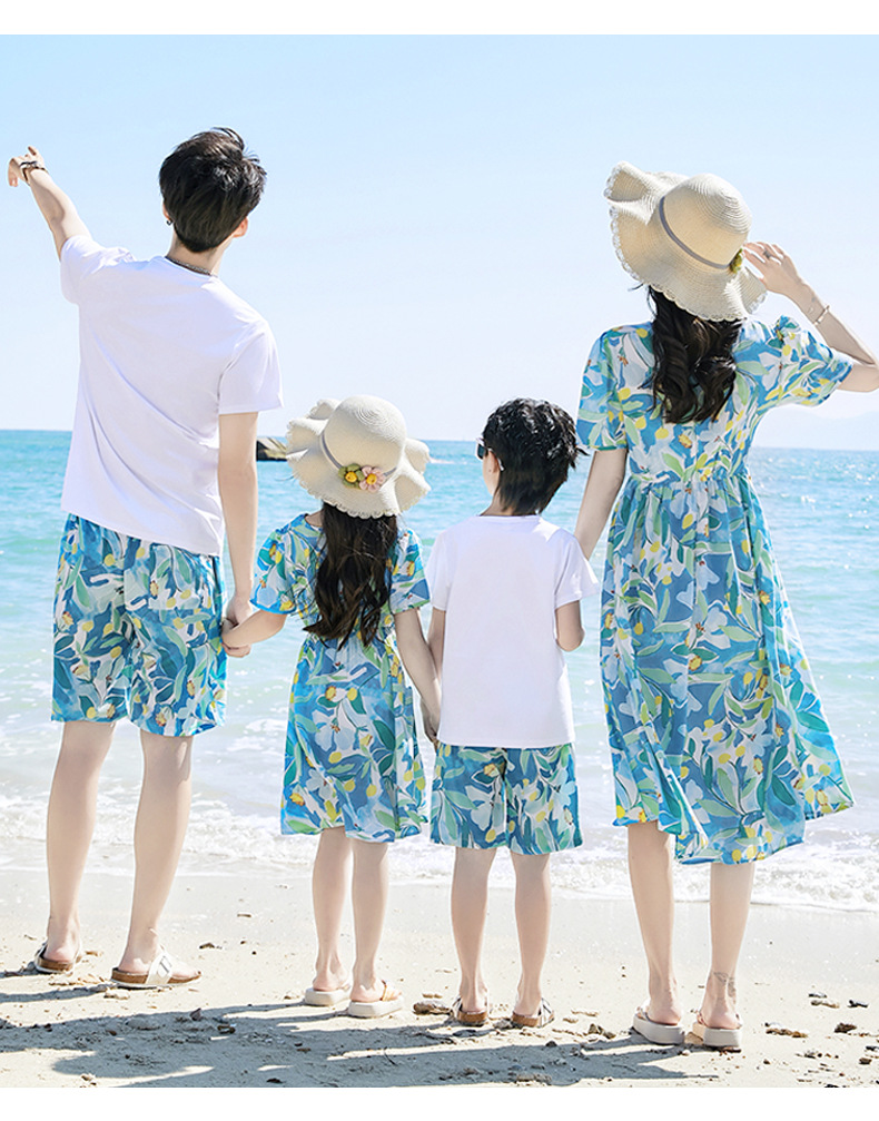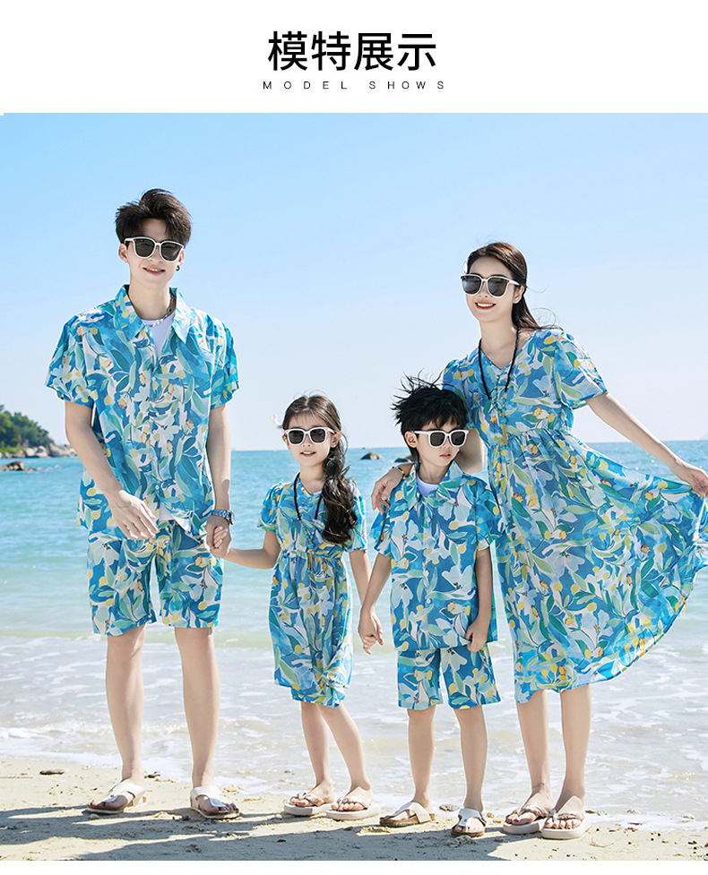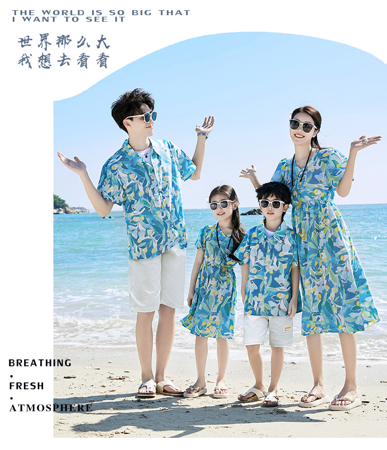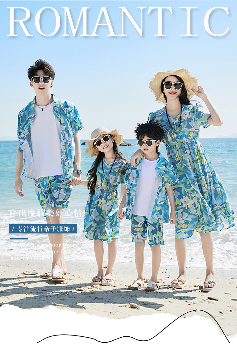 해변 부모-아들 세트 아버지-아들 셔츠 세트 2024 년 3 ~ 4 명의 외국식 어머니-딸 휴일 원피스 여름 새 가족