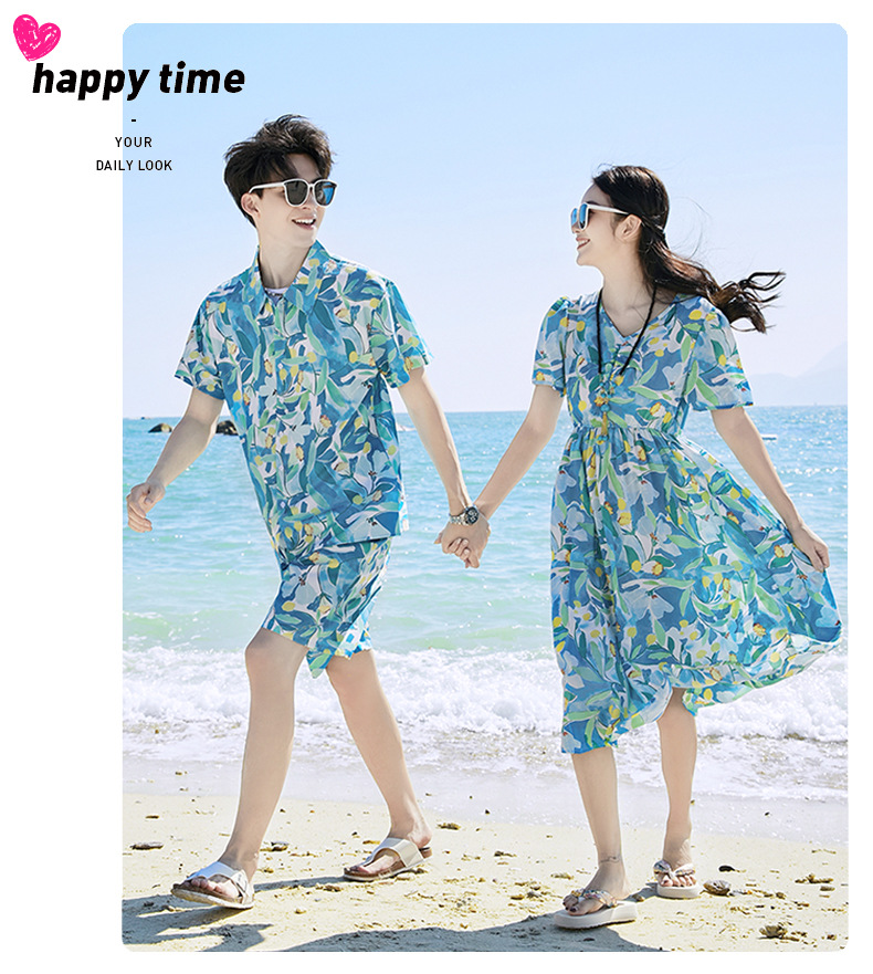 해변 부모-아들 세트 아버지-아들 셔츠 세트 2024 년 3 ~ 4 명의 외국식 어머니-딸 휴일 원피스 여름 새 가족스토어 가기