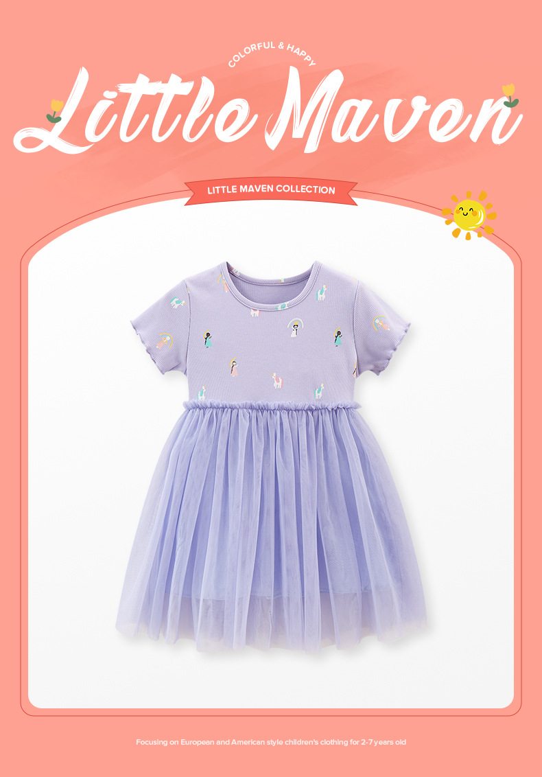 작은 maven 국경 아동복 유럽과 미국 스타일의 만화 소녀의 원피스 여름 짧은 소매 어린이 공주 원피스스토어 가기