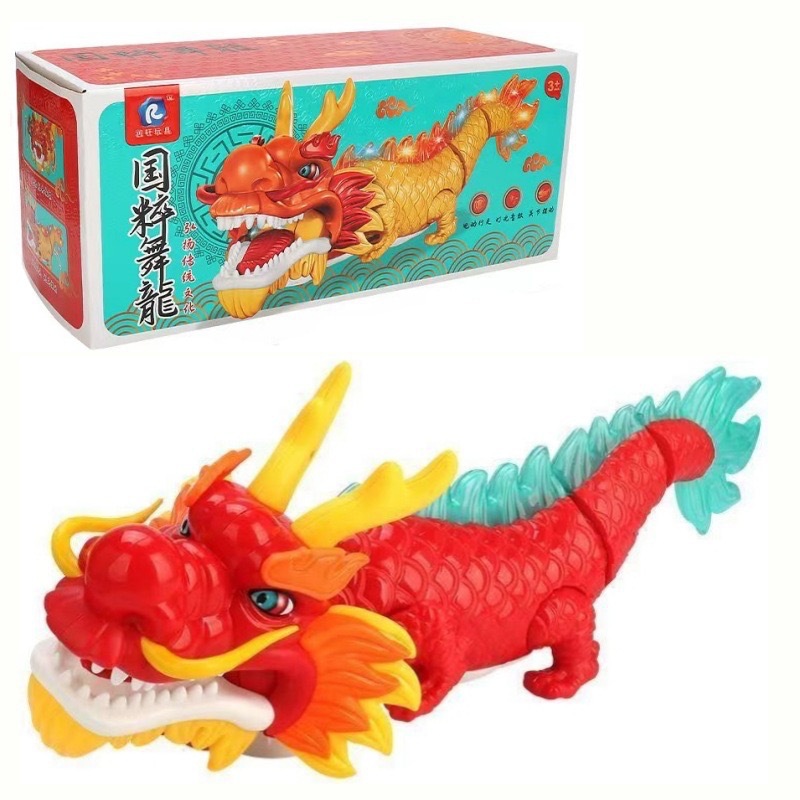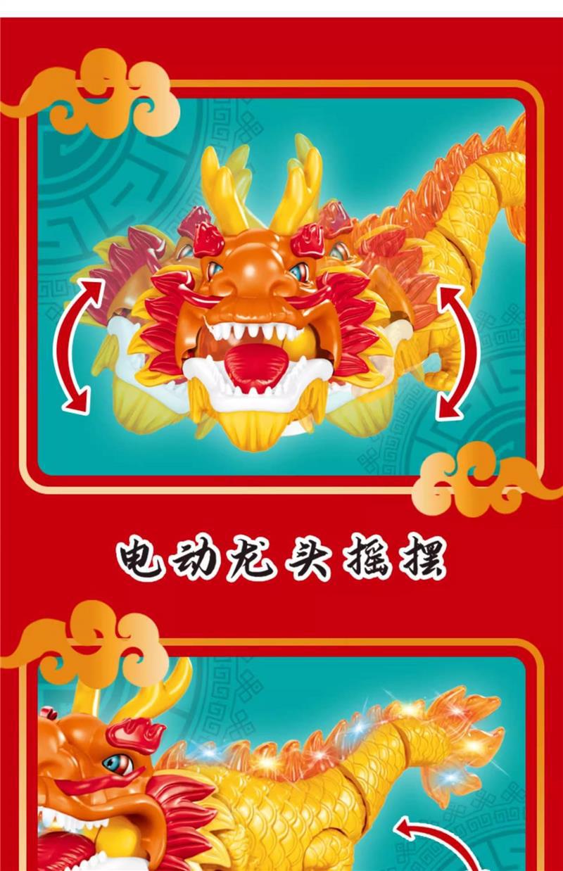 Tiktok 같은 스타일의 국가 패션 전기 드래곤 댄스 년 랜턴 마스코트 유니버설 스윙 헤드 스윙 테일 라이트 음악 어린이 장난감스토어 가기