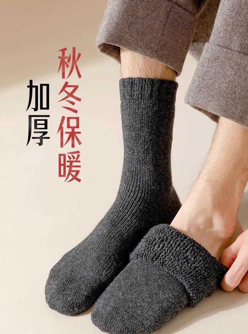 Zhuji 테리 두꺼운 양말 남성과 여성 중반 송아지 양말 가을, 겨울 따뜻한 스타킹 두꺼운 벨벳 겨울 수건 바닥 양말