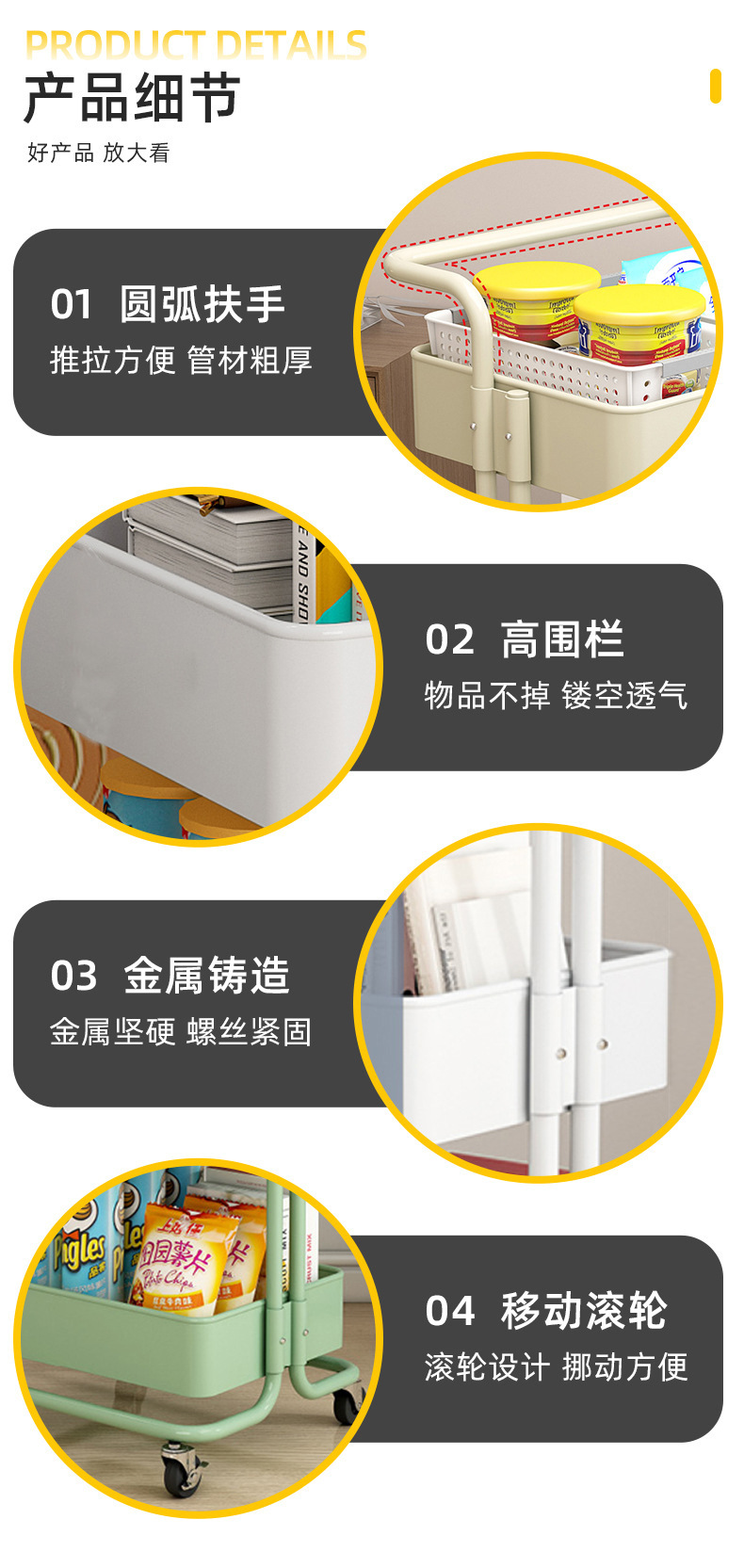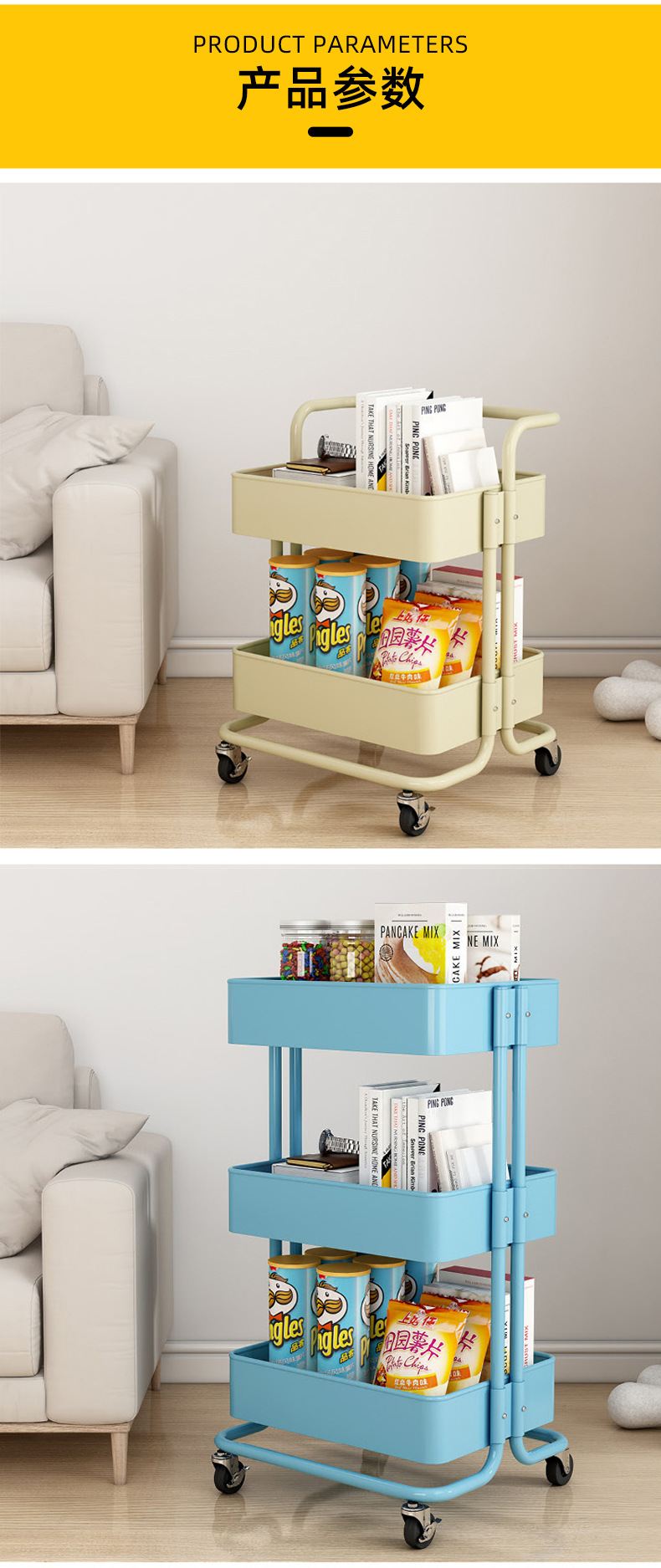 트롤리 가정용 바닥형 수납선반 다층 수납선반 이동식 바퀴 달린 스낵 수납선반 기숙사 선반스토어 가기