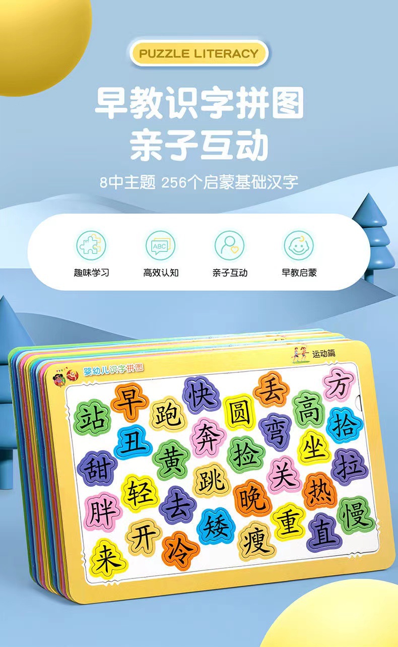 조기 교육 계몽주의 어린이 문해력 퍼즐 아기 재미 단어 인식 유물 문해력 퍼즐 카드 교육 장난감 도매스토어 가기