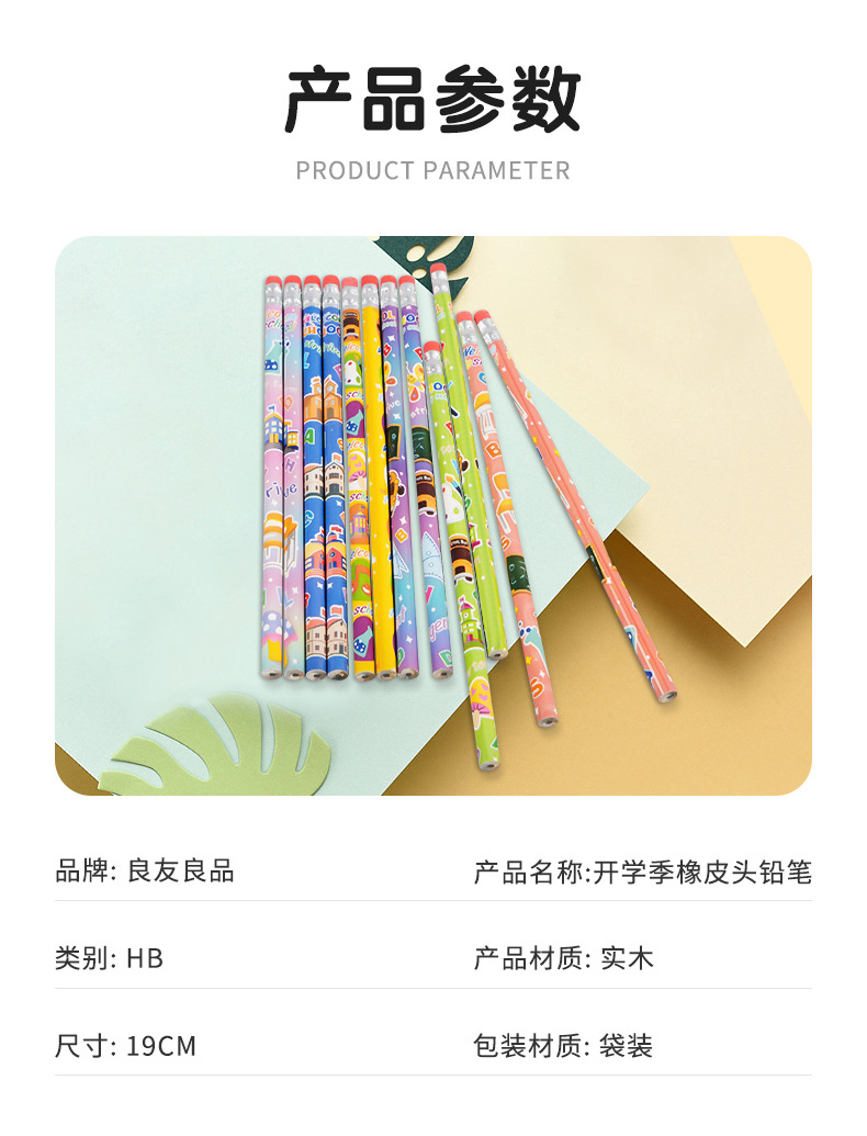 학교 시즌 귀여운 어린이 여성 만화 연필 HB 초등학생 특별 글쓰기 그림 스케치 지우개 문구스토어 가기