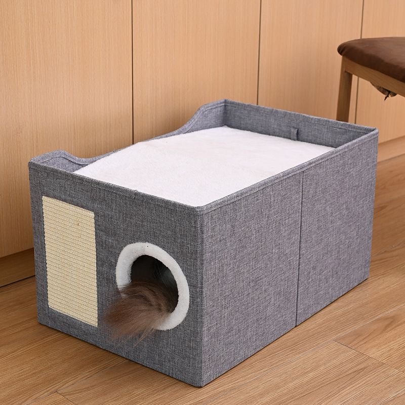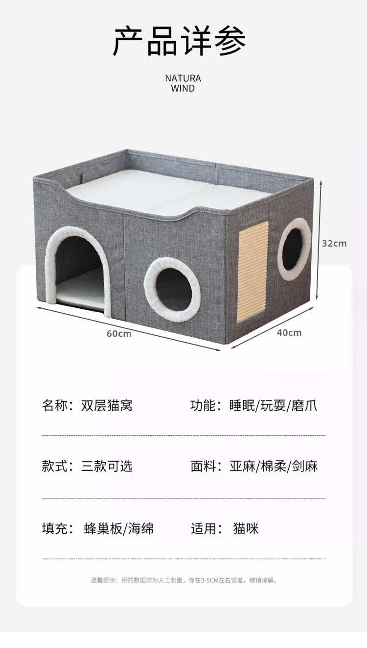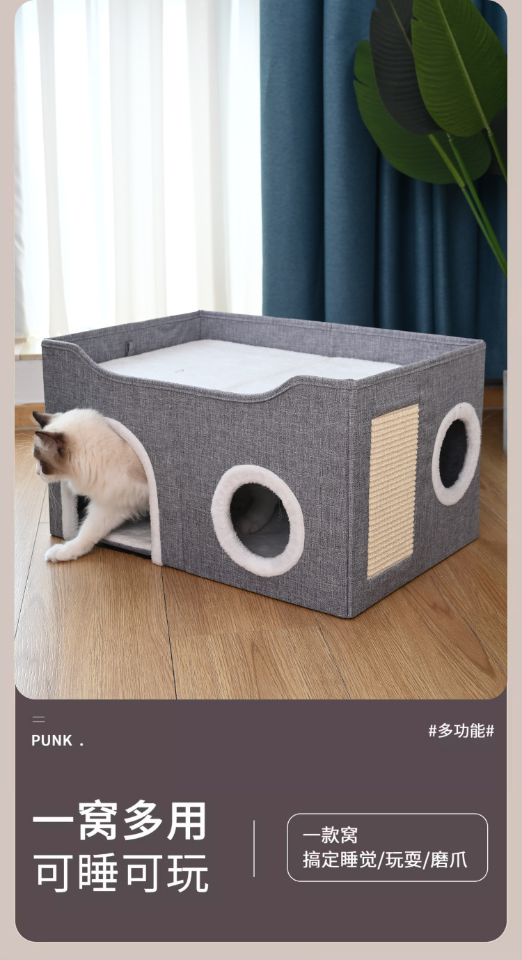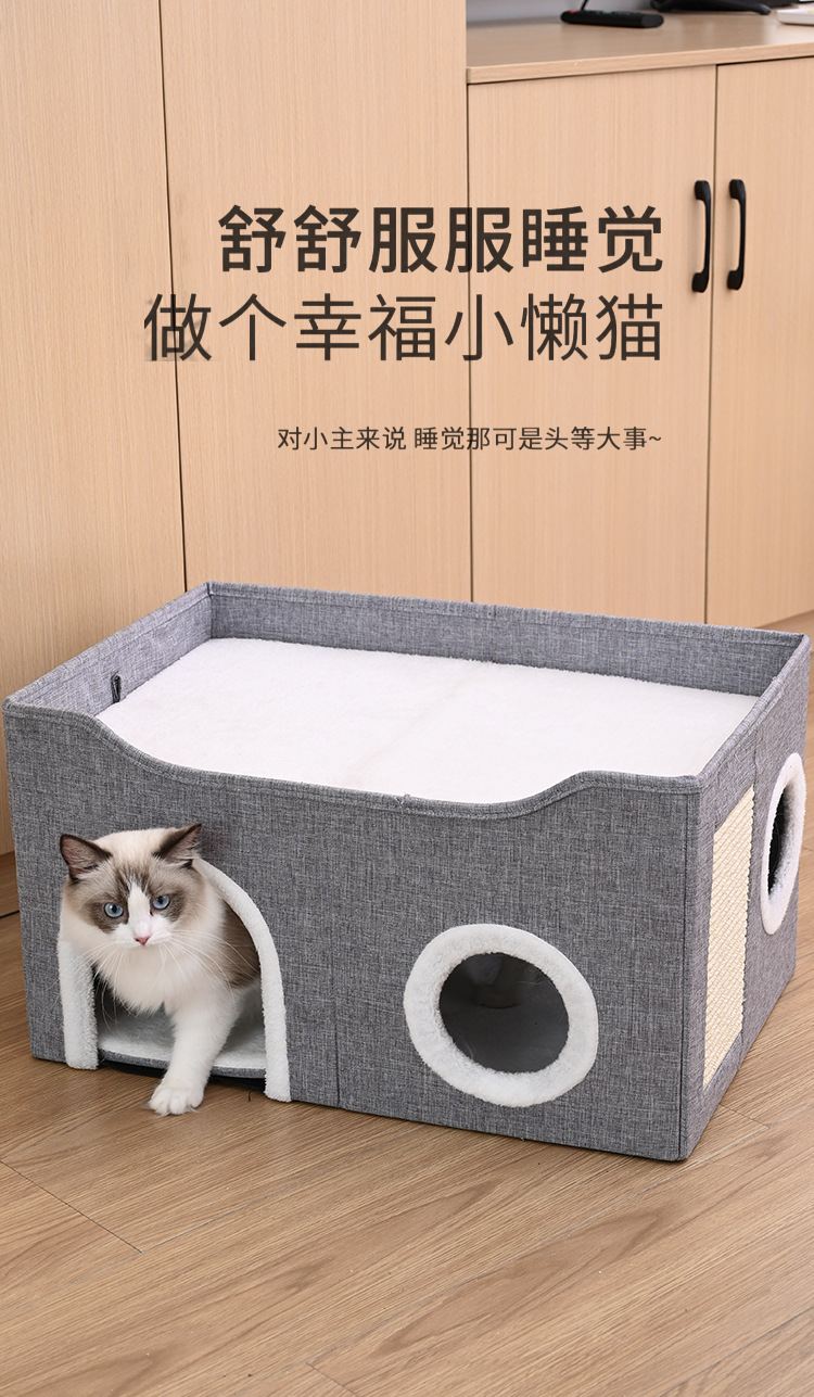 사계절용 애완동물 집, 고양이 집, 이중층 다공성 사자수 발톱 갈이 애완용품, 완전 밀폐형 접이식 개집