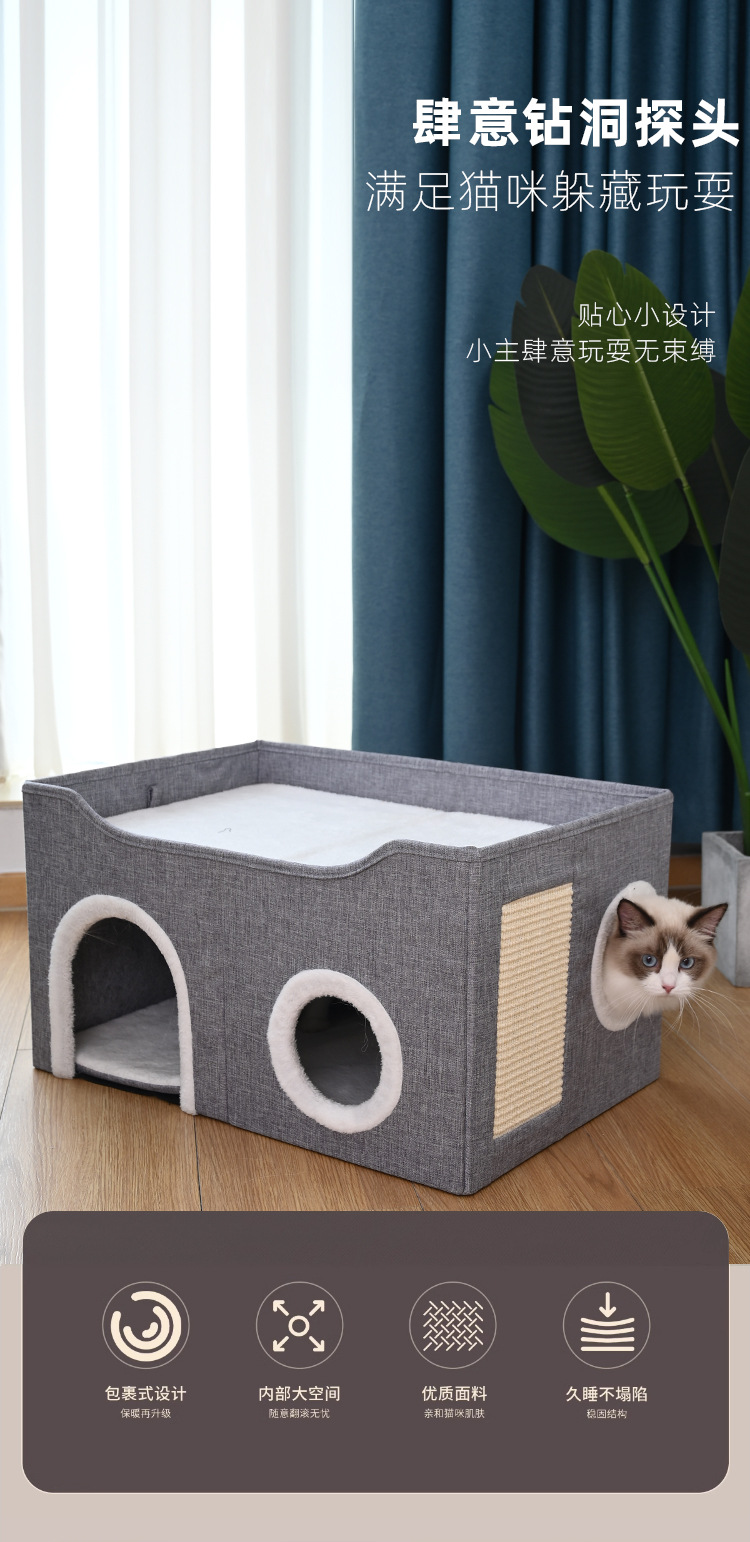 사계절용 애완동물 집, 고양이 집, 이중층 다공성 사자수 발톱 갈이 애완용품, 완전 밀폐형 접이식 개집스토어 가기