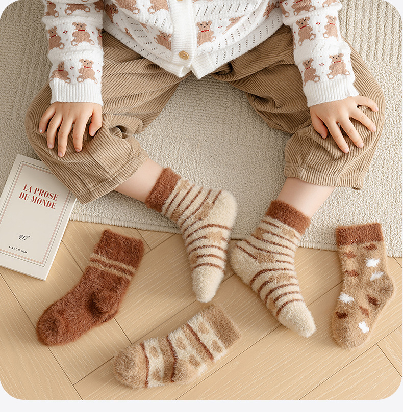어린이 양말 겨울 두꺼운 수건 양말 따뜻한 모조 밍크 벨벳 어린이 양말 중반의 송아지 테리 양말 수면 양말