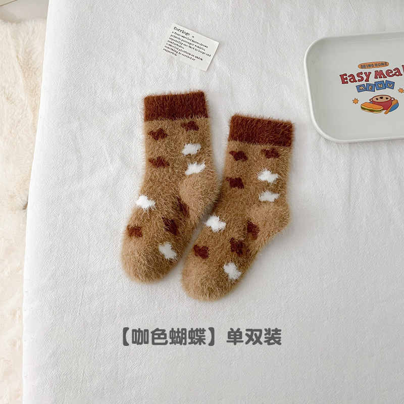 어린이 양말 겨울 두꺼운 수건 양말 따뜻한 모조 밍크 벨벳 어린이 양말 중반의 송아지 테리 양말 수면 양말스토어 가기