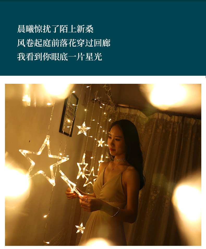 국경 간 LED 스타 문 커튼 캠핑 태양 원격 제어 스타 라이트 룸 안뜰 장식 크리스마스 휴일 빛