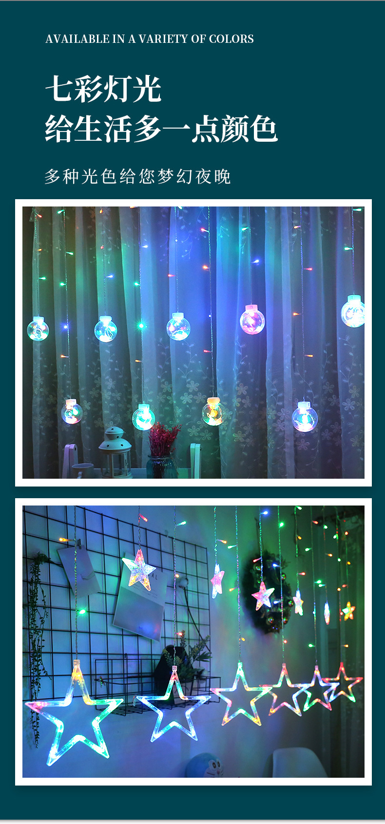• 따뜻한 색상 (원하는 볼 커튼 라이트)