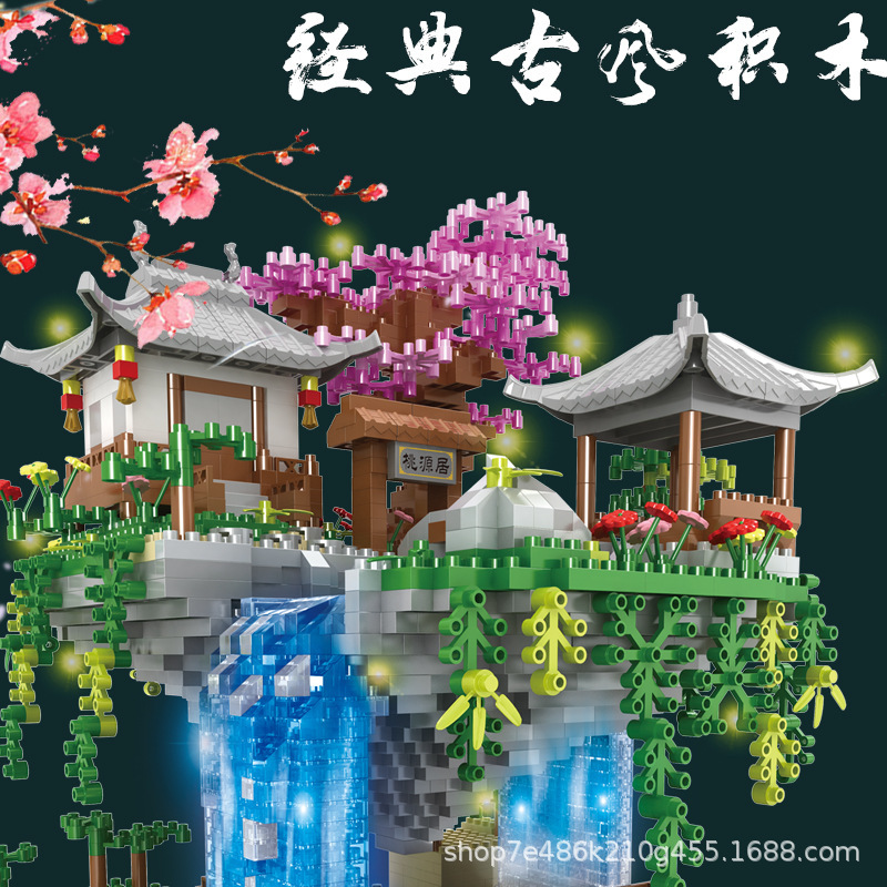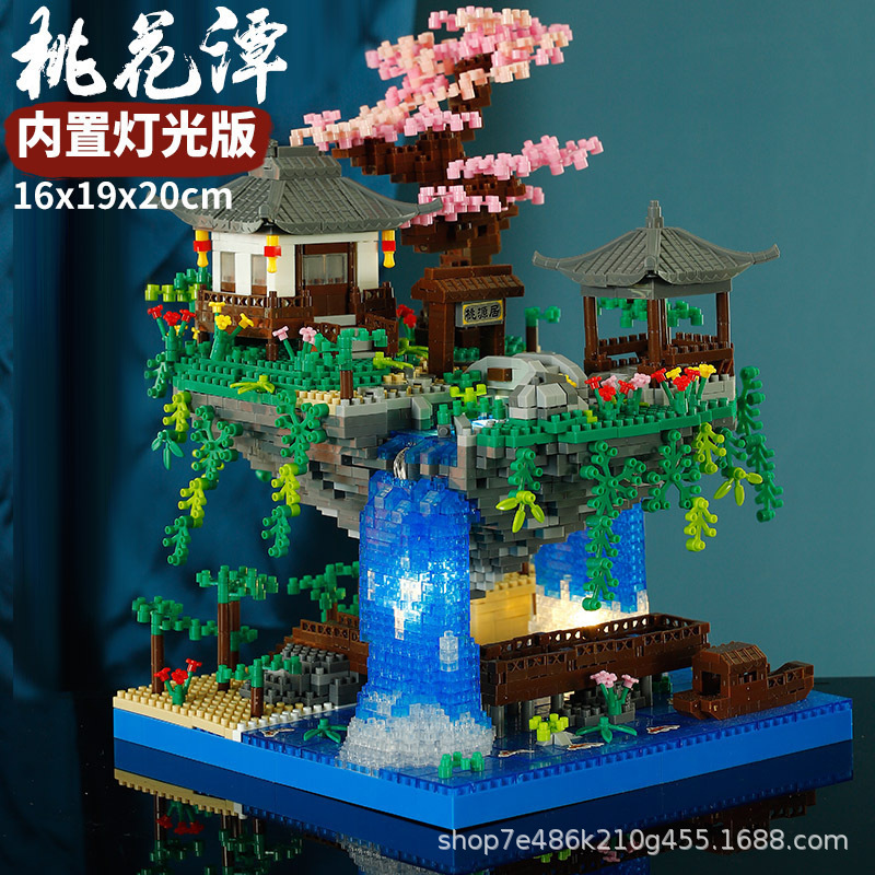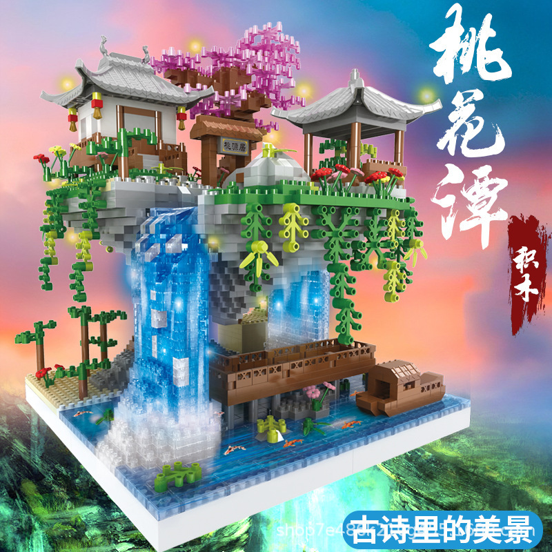 복숭아 꽃 풀 빌딩 블록 높은 난이도 큰 고대 스타일 건물 14 세 이상 조립 장난감 소년과 소녀 M2039스토어 가기