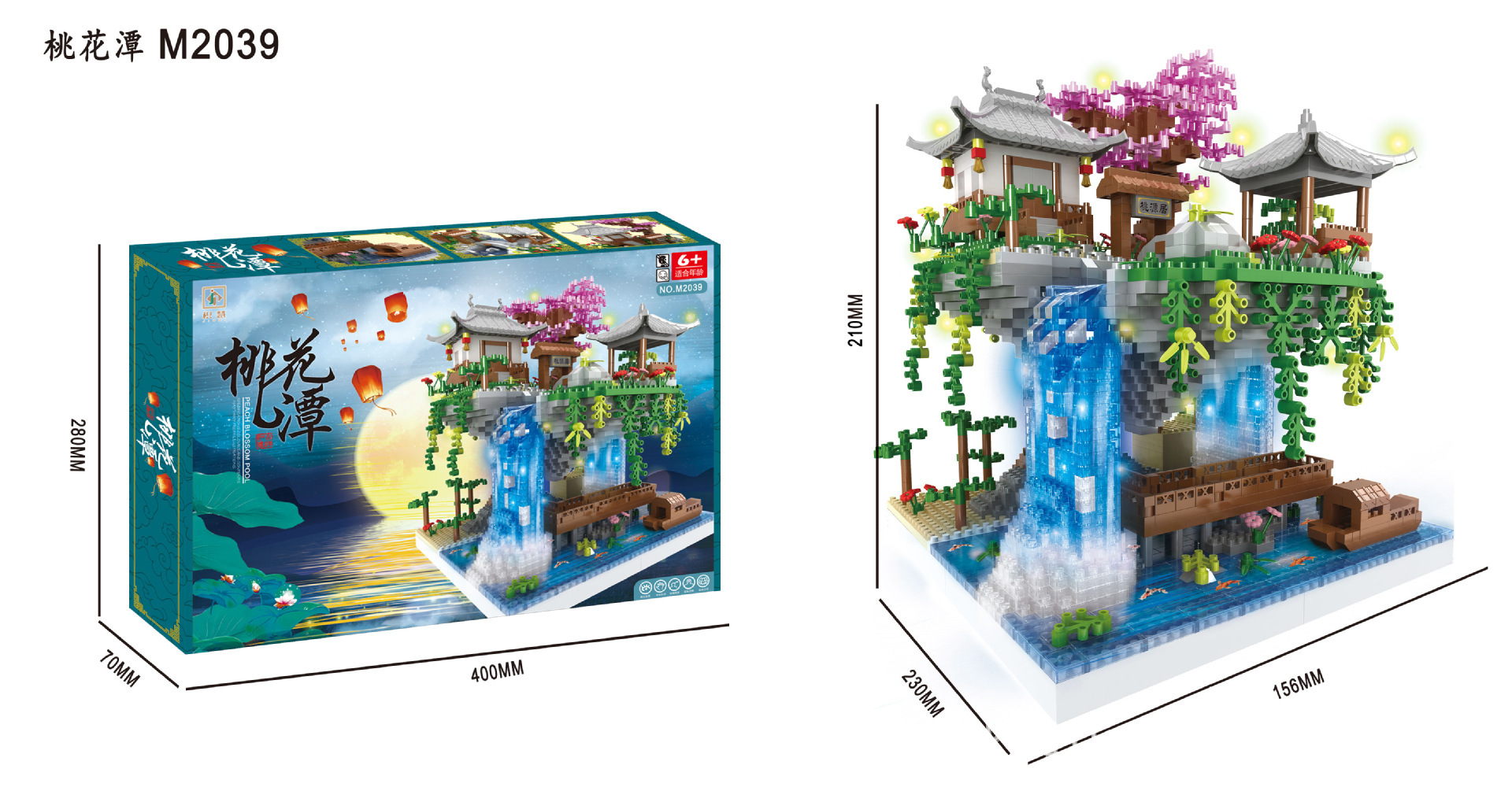 복숭아 꽃 풀 빌딩 블록 높은 난이도 큰 고대 스타일 건물 14 세 이상 조립 장난감 소년과 소녀 M2039