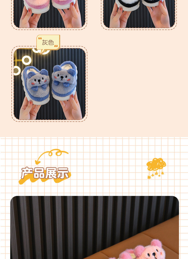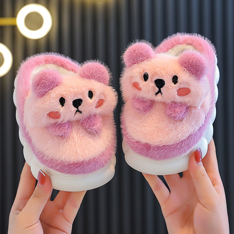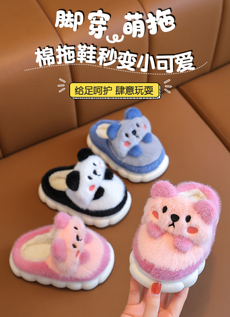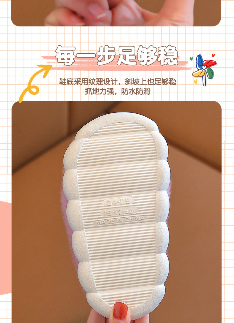 어린이용 면 슬리퍼 겨울용 가정용 2025년 신형 만화 캐릭터 남녀공용 방수 두꺼운 밑창 따뜻한 털 슬리퍼스토어 가기