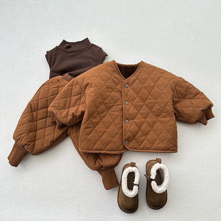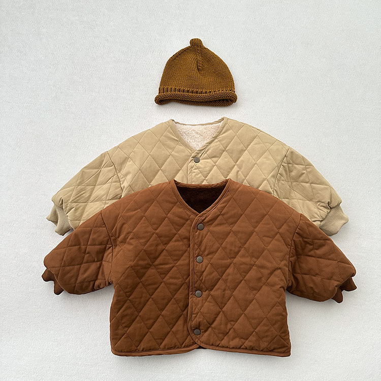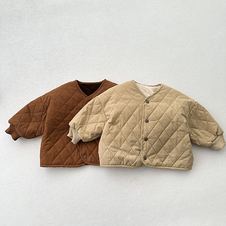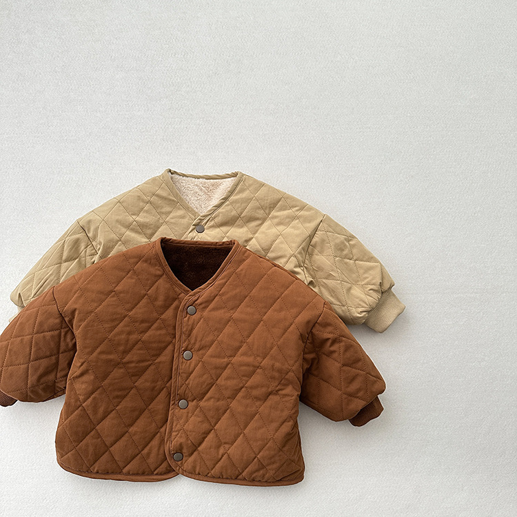 아동복 겨울 새로운 어린이 퀼트 복고풍 두껍게 된면 패딩 코트 남성과 여성의 아기 양면 착용 따뜻한 기모 면 패딩 코트