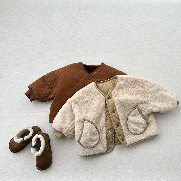 아동복 겨울 새로운 어린이 퀼트 복고풍 두껍게 된면 패딩 코트 남성과 여성의 아기 양면 착용 따뜻한 기모 면 패딩 코트스토어 가기
