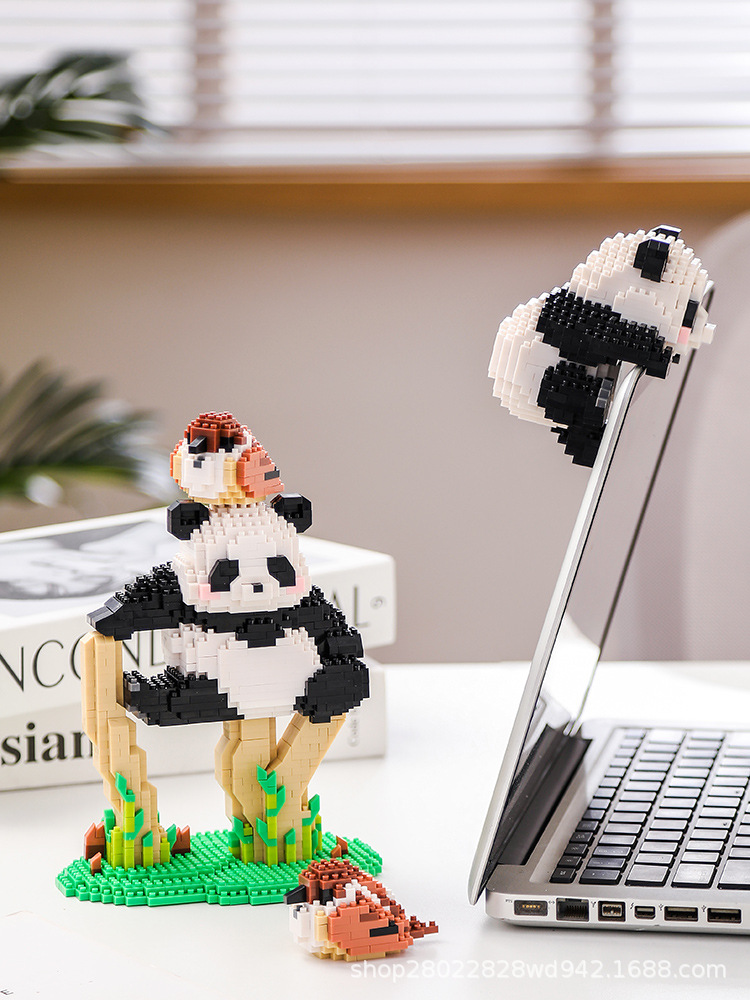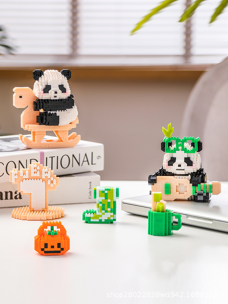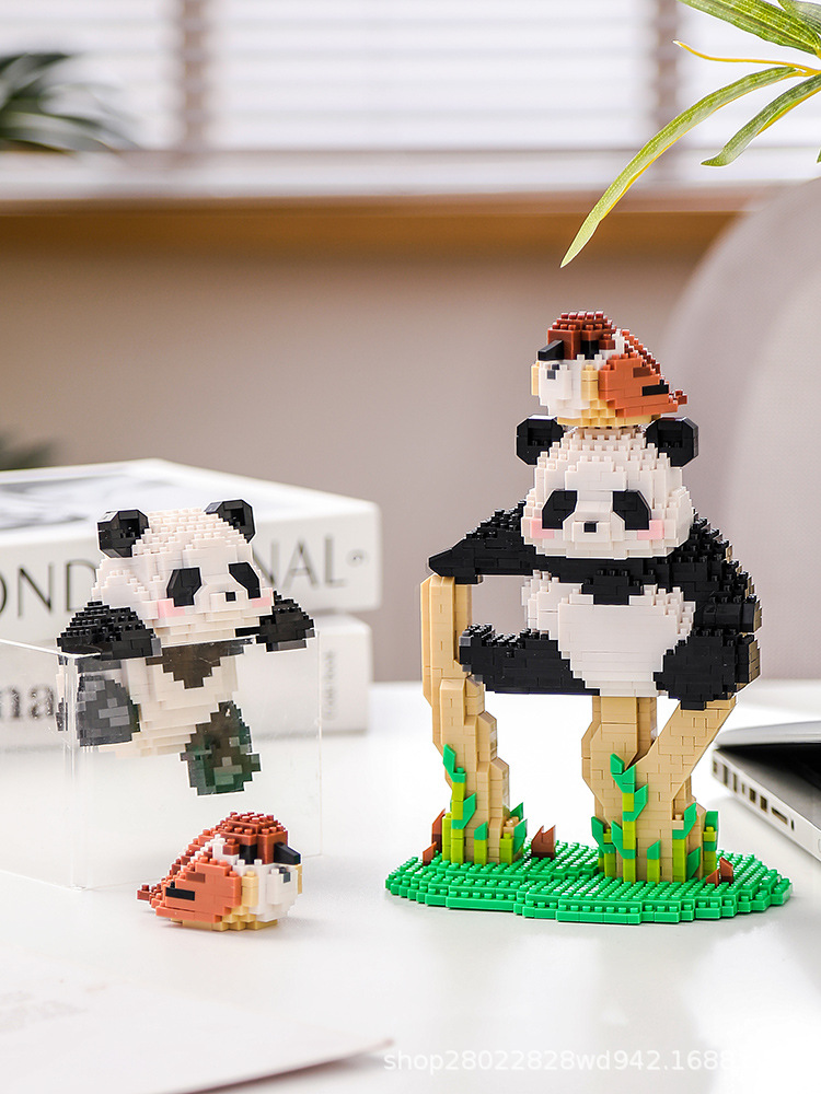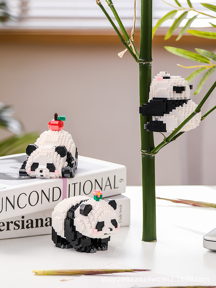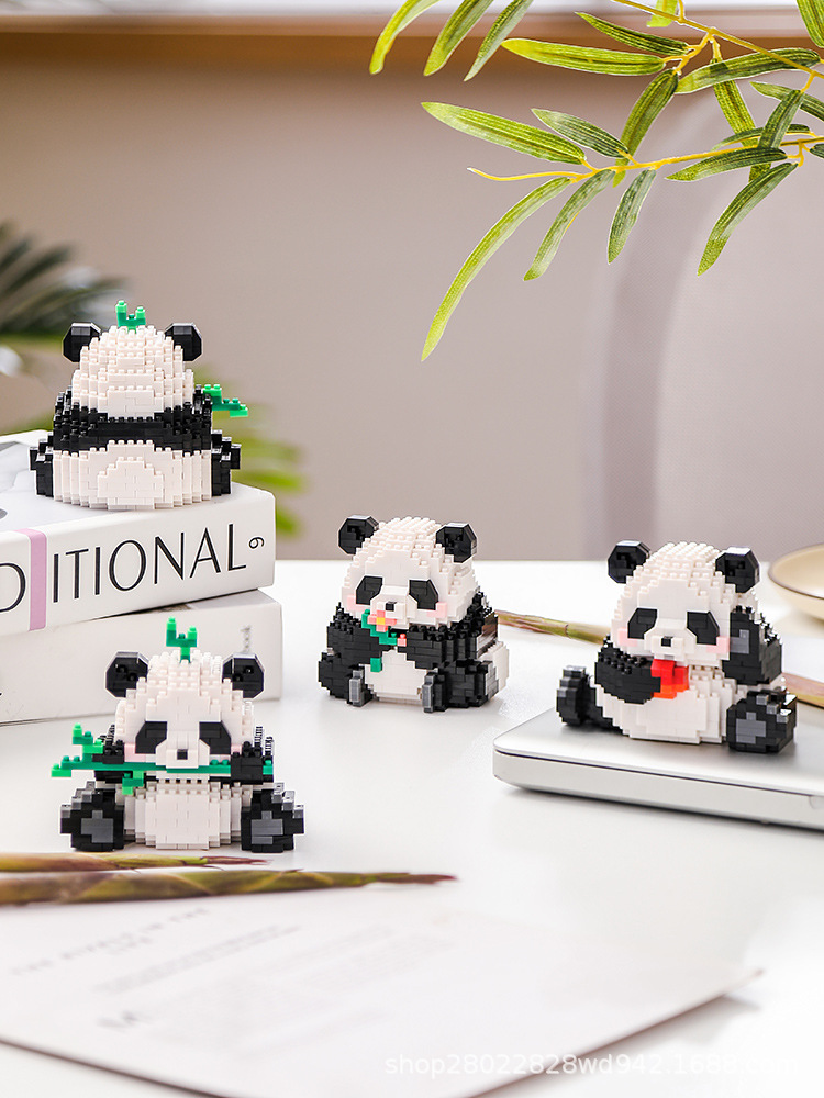 자이언트 팬더 귀여운 란푸 바오 꽃 빌딩 블록 작은 입자 조립 장난감 마드 퍼즐 소년과 소녀 어린이 선물스토어 가기