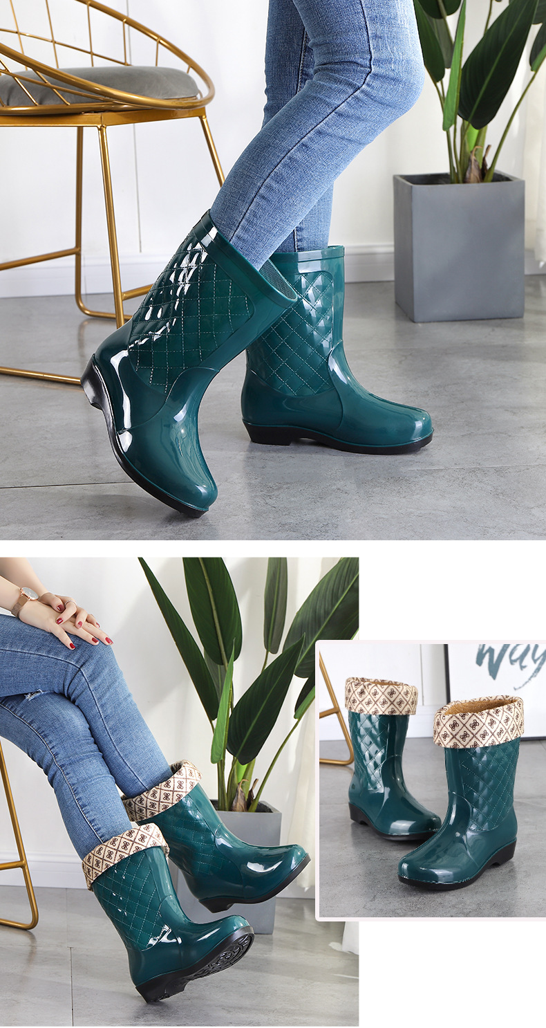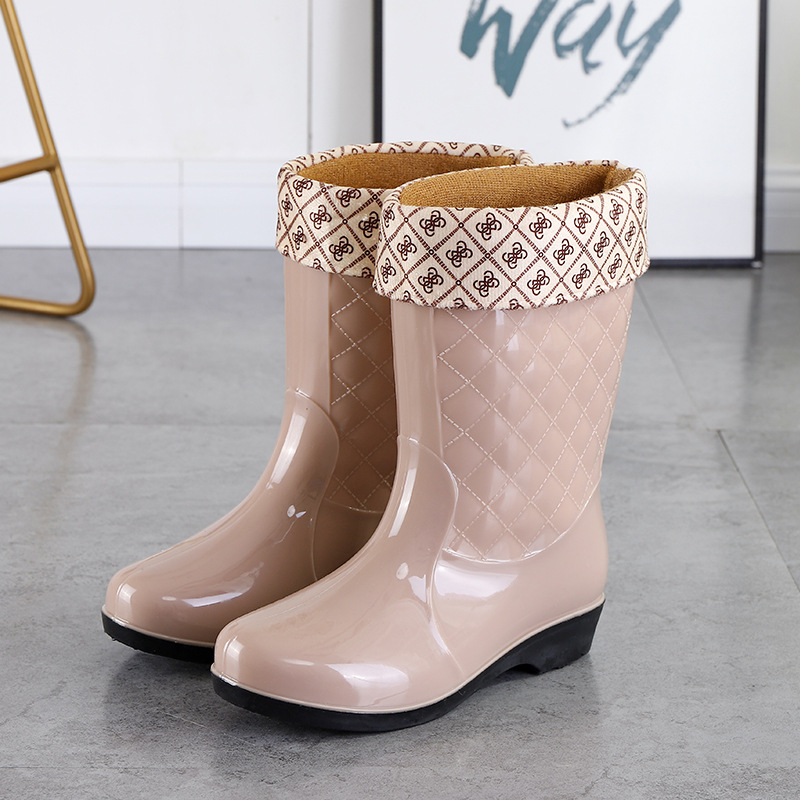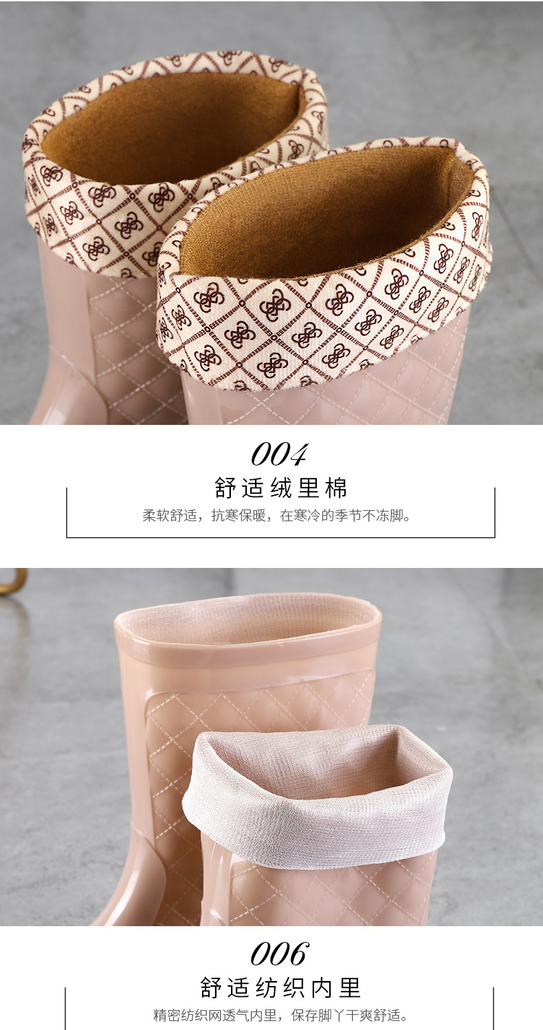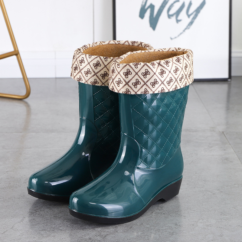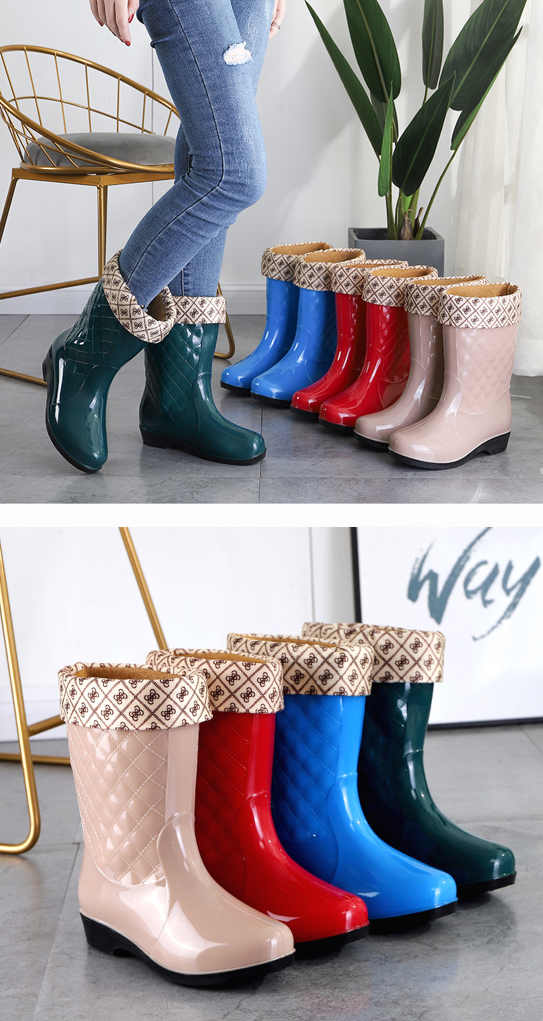 여성용 신형 레인부츠, 중간 길이, 두꺼운 밑창, 내구성, 미끄럼 방지, 내마모성, 플러스 벨벳 및 면으로 보온, 주방 및 세차용 방수