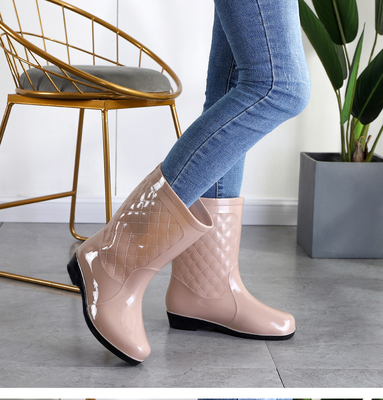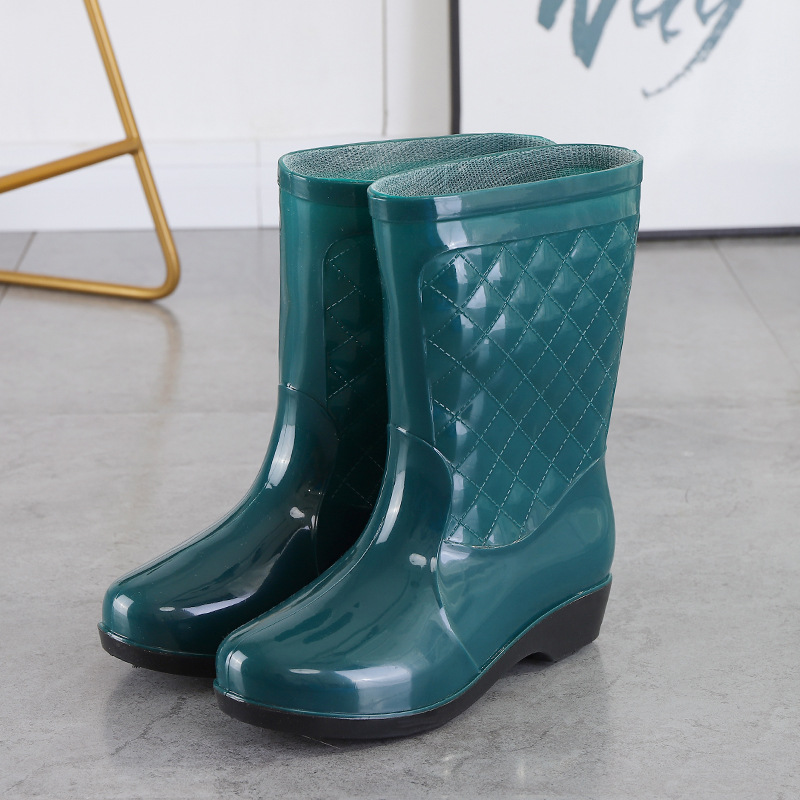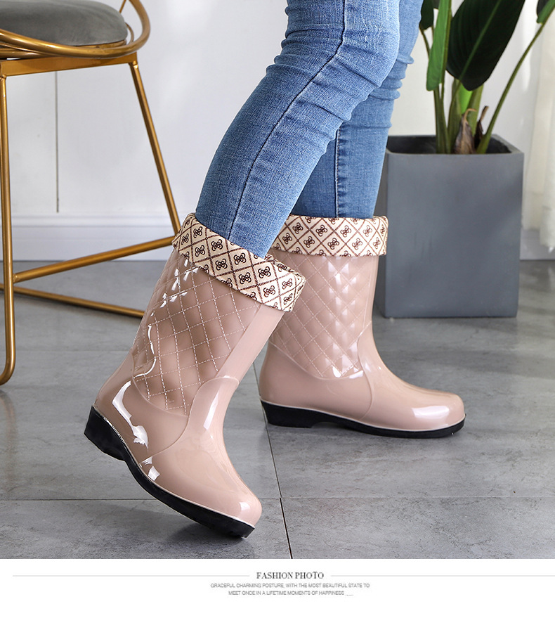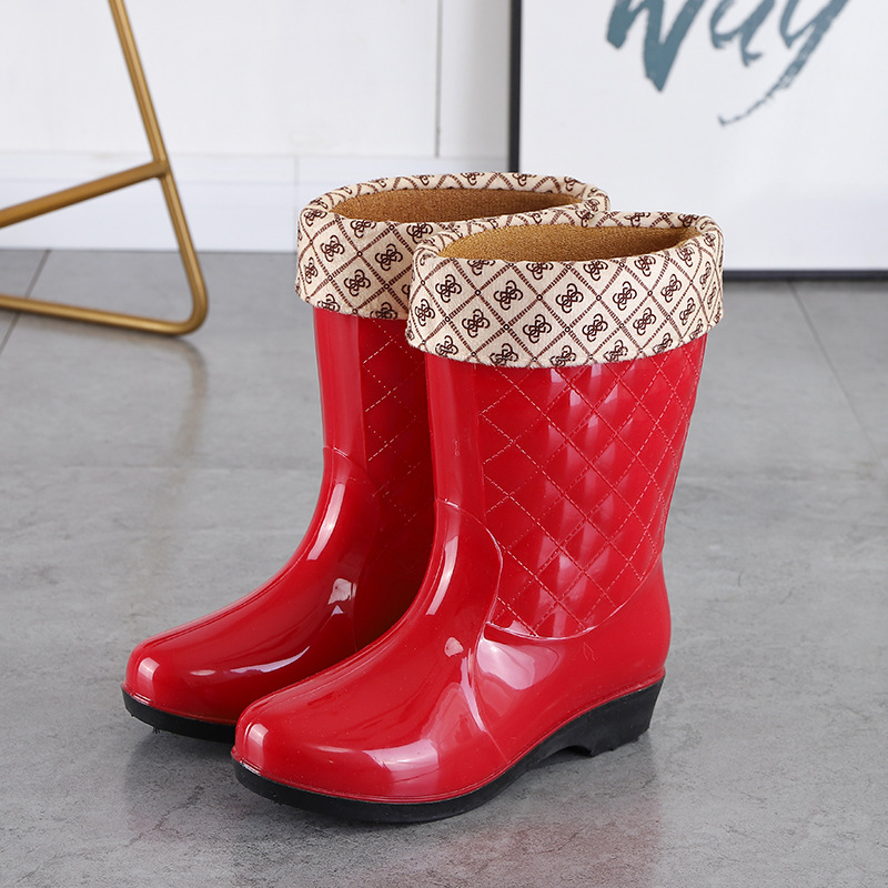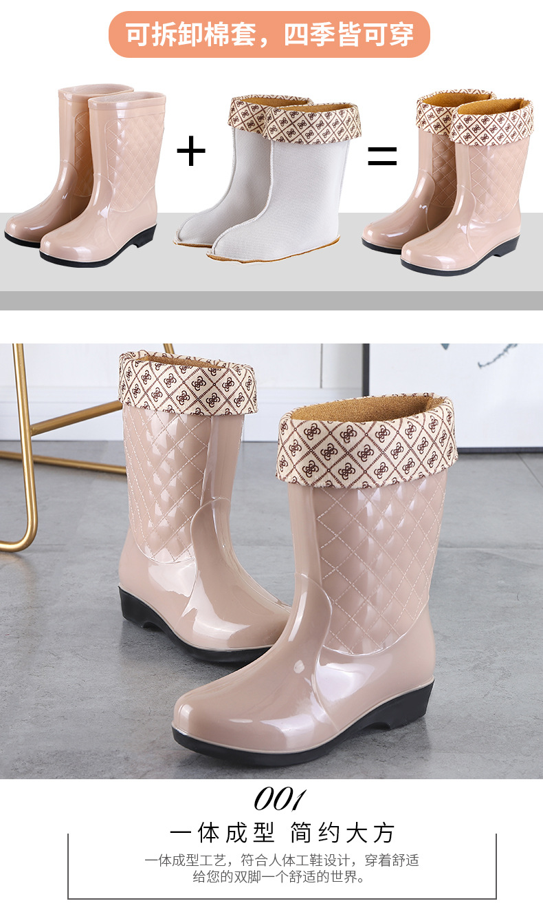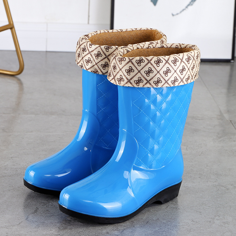 여성용 신형 레인부츠, 중간 길이, 두꺼운 밑창, 내구성, 미끄럼 방지, 내마모성, 플러스 벨벳 및 면으로 보온, 주방 및 세차용 방수