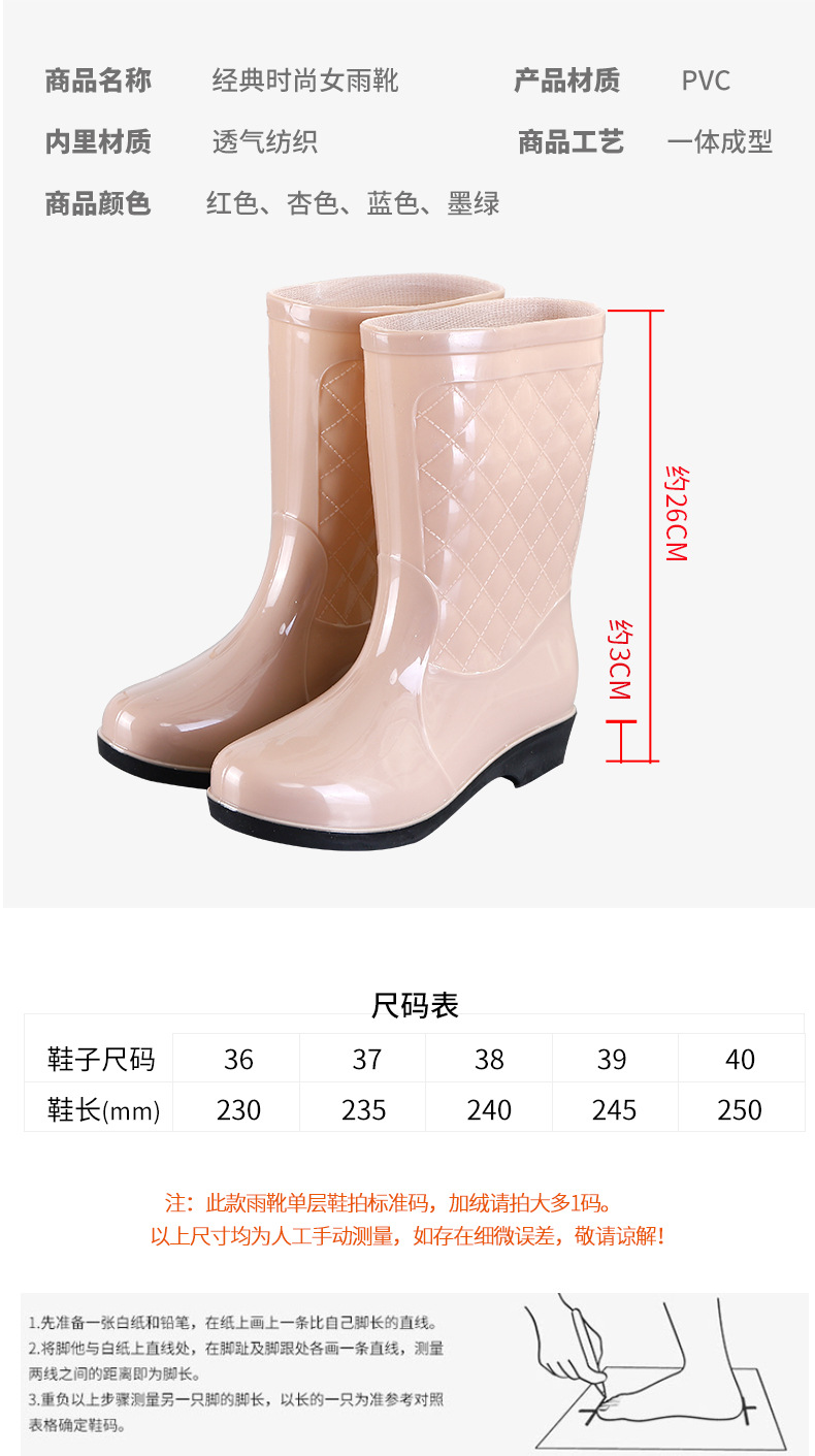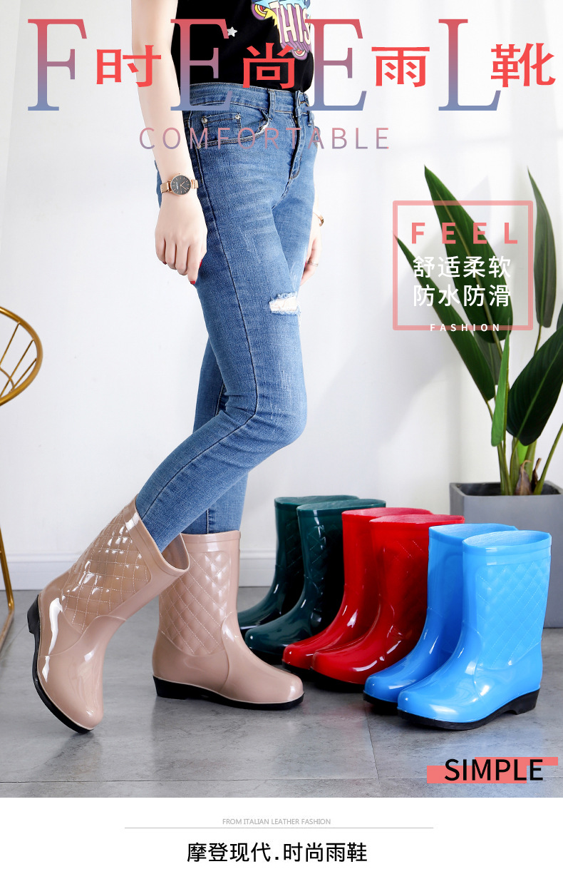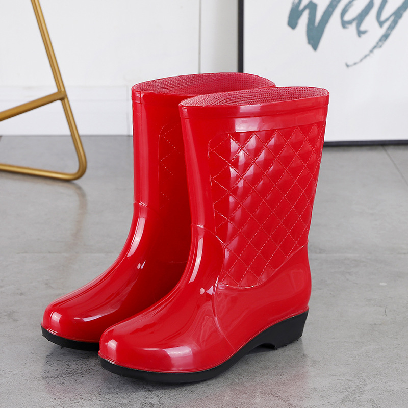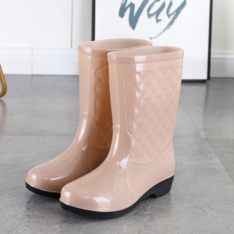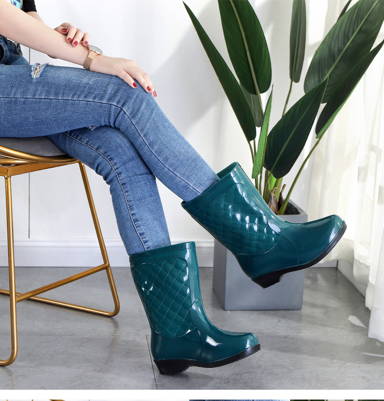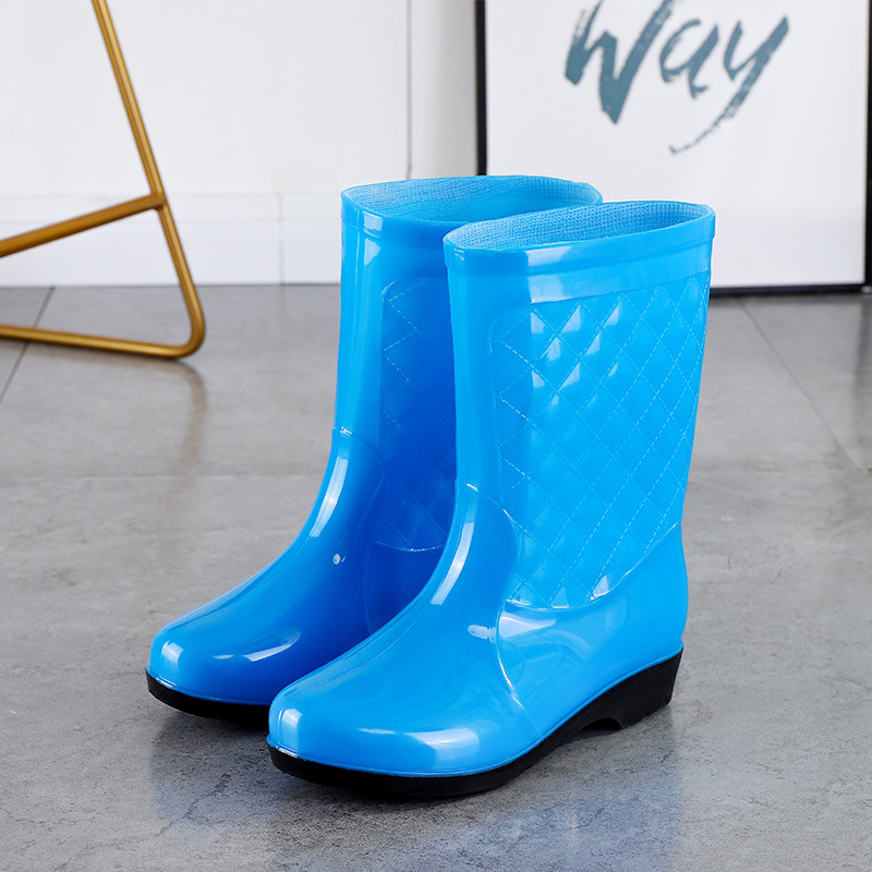 여성용 신형 레인부츠, 중간 길이, 두꺼운 밑창, 내구성, 미끄럼 방지, 내마모성, 플러스 벨벳 및 면으로 보온, 주방 및 세차용 방수