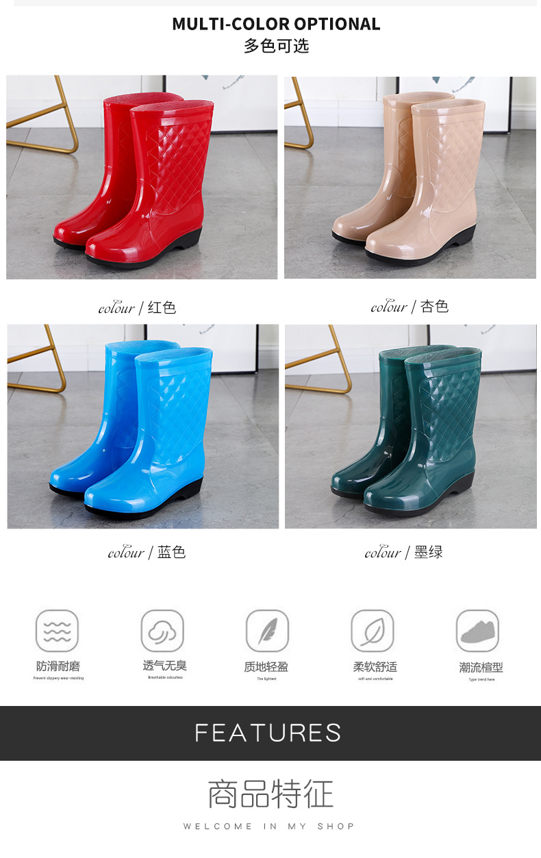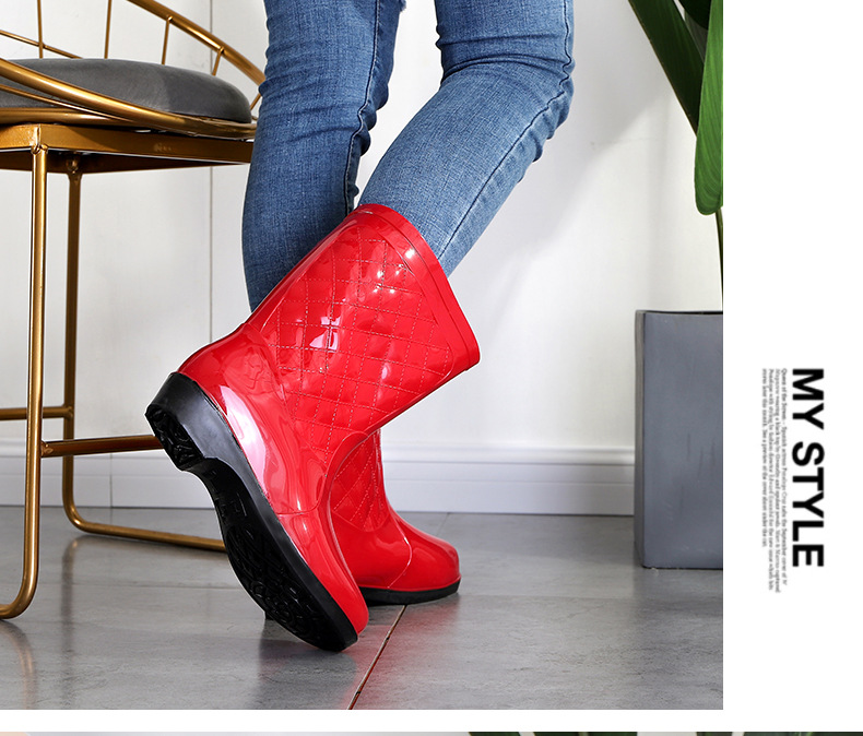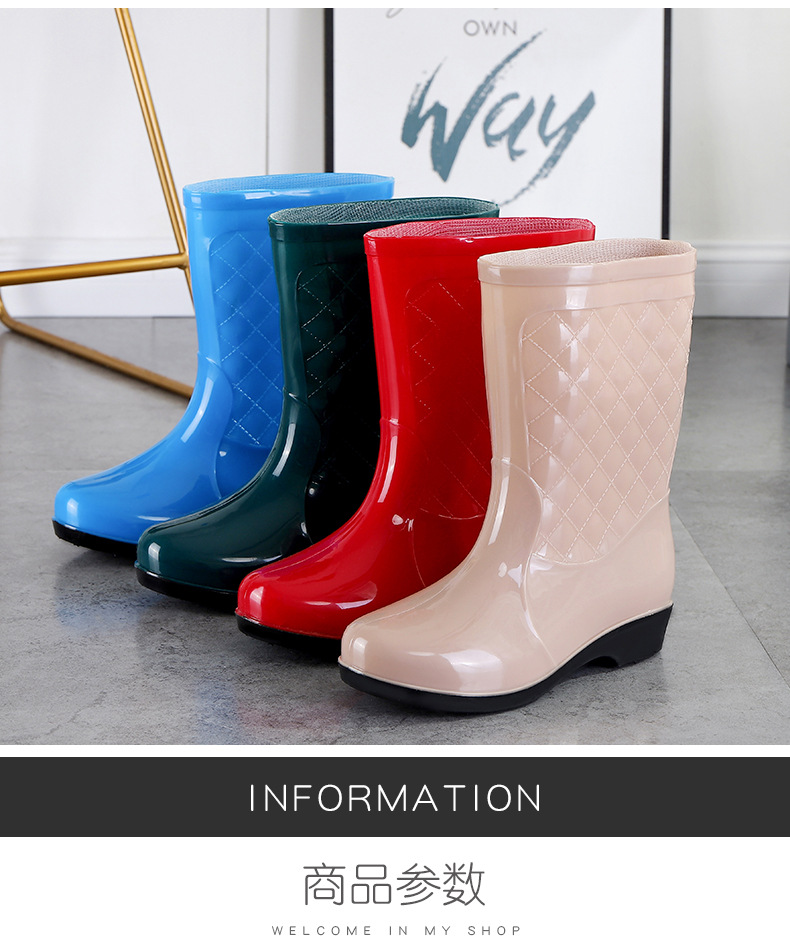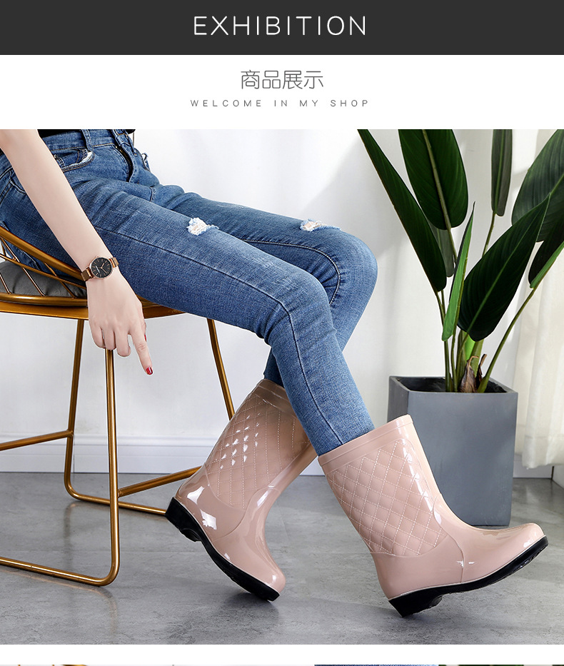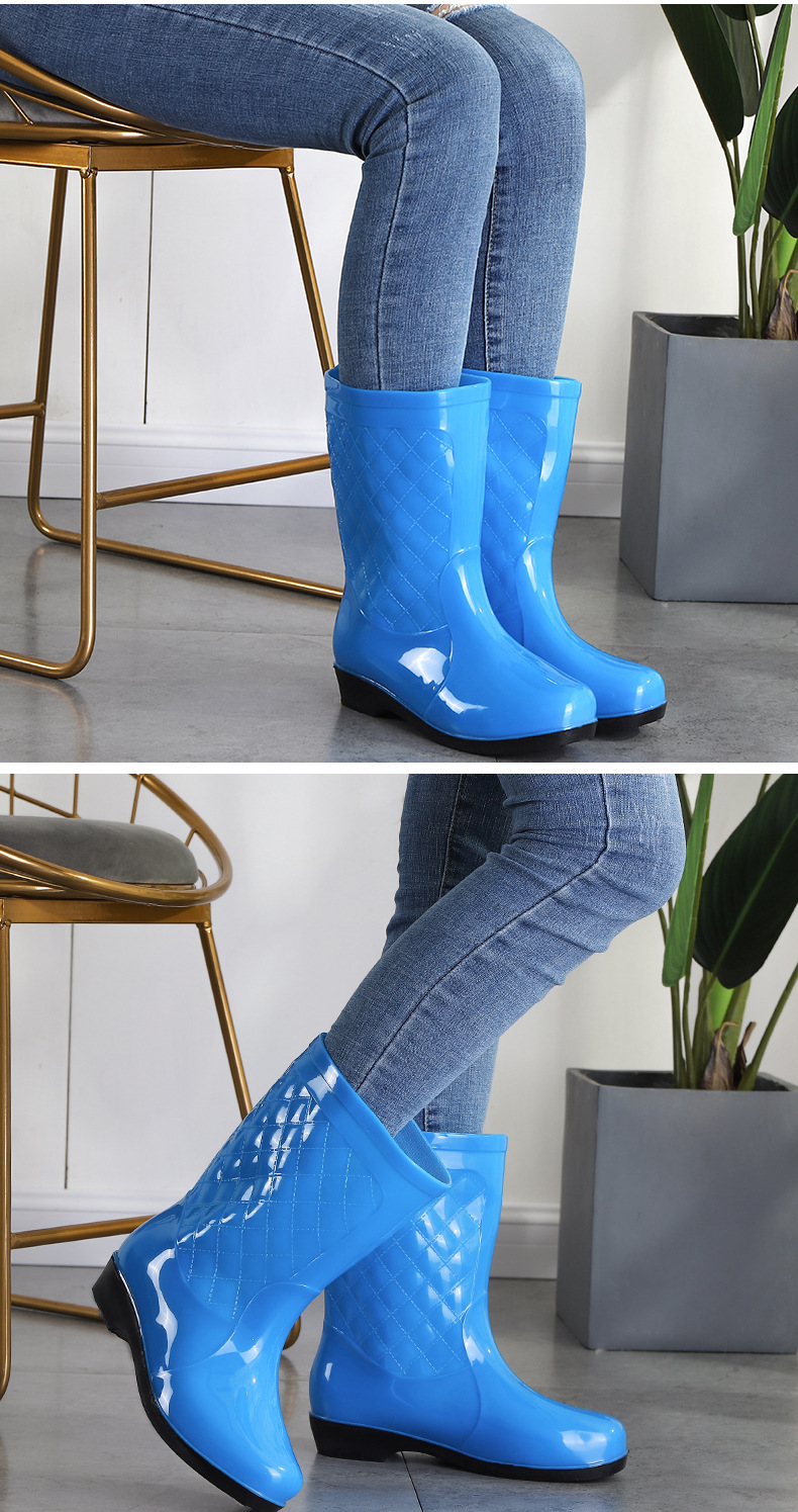 여성용 신형 레인부츠, 중간 길이, 두꺼운 밑창, 내구성, 미끄럼 방지, 내마모성, 플러스 벨벳 및 면으로 보온, 주방 및 세차용 방수스토어 가기