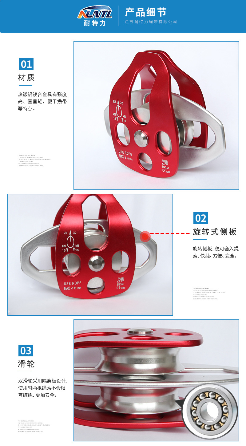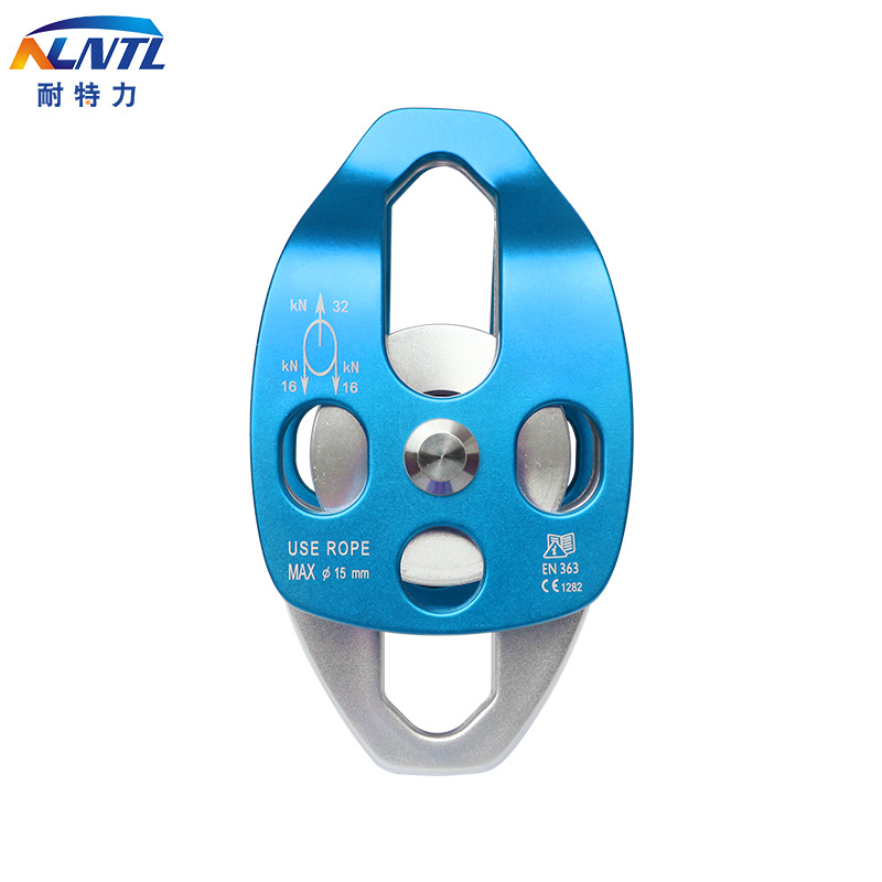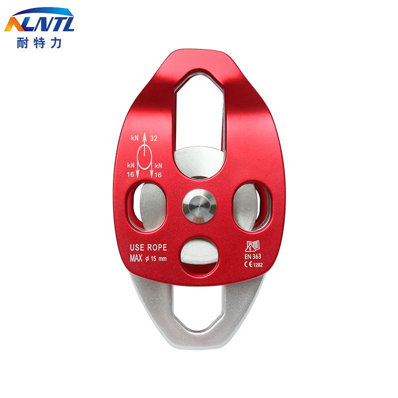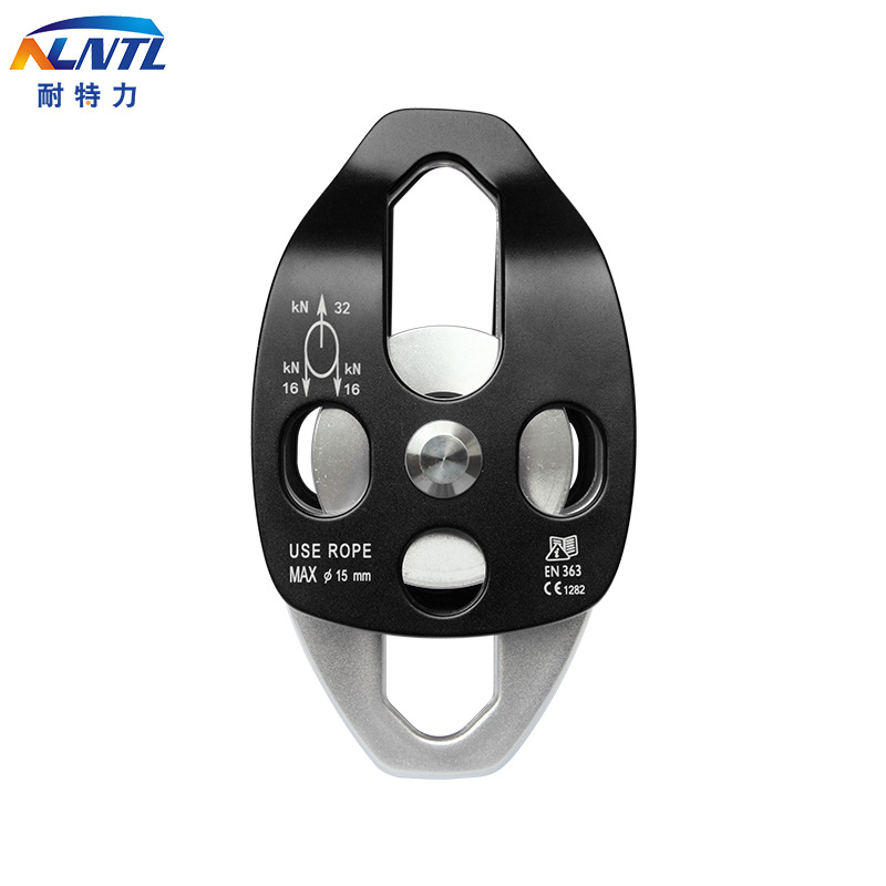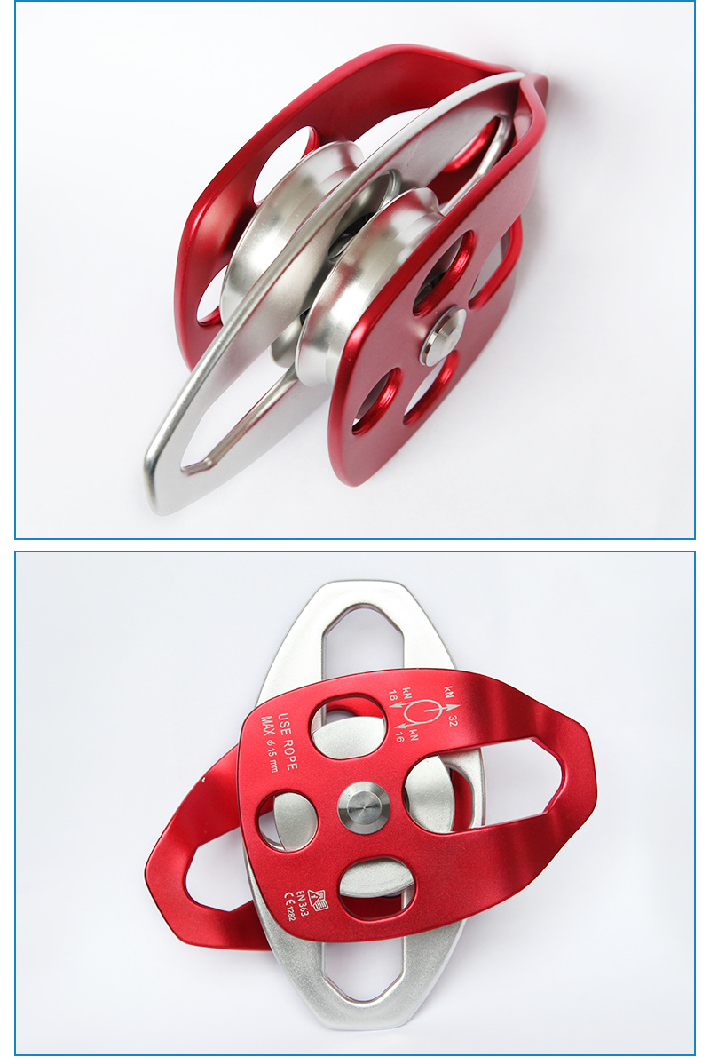 야외 등산 바위 등반 사이드 플레이트 더블 풀리 크로스 크로스 크로스 운송 매달려 휠 로프웨이 풀리 공중 작업 동축 도르래