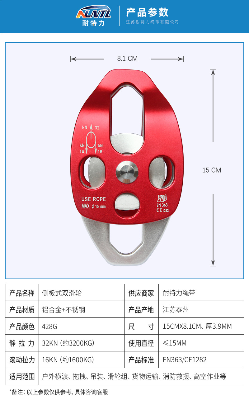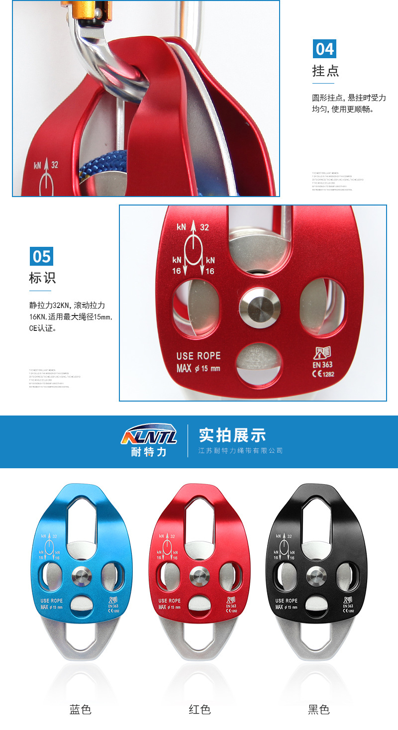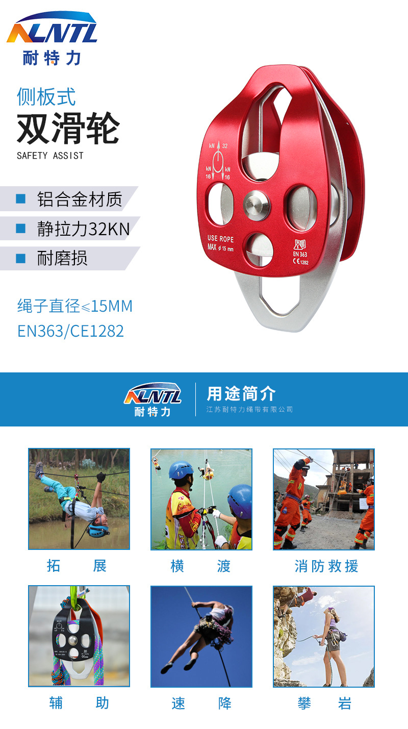야외 등산 바위 등반 사이드 플레이트 더블 풀리 크로스 크로스 크로스 운송 매달려 휠 로프웨이 풀리 공중 작업 동축 도르래
