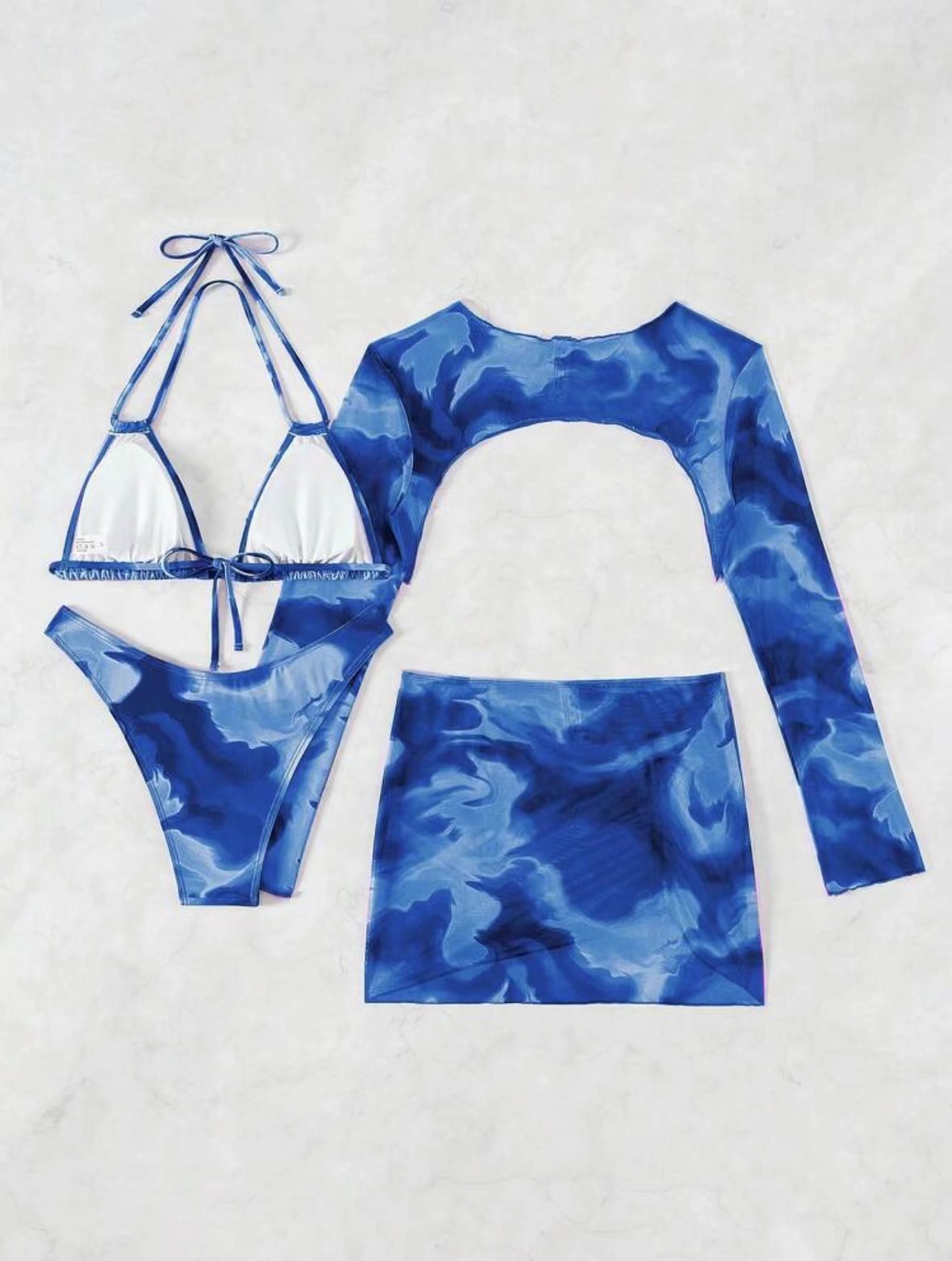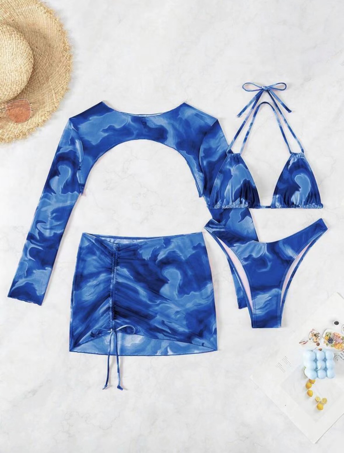 재고 2024 새로운 유럽과 미국의 비키니 타이 염료 인쇄 4 피스 수영복 비키니 수영복 여성 섹시스토어 가기