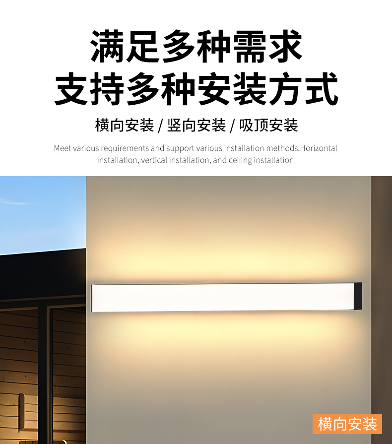 led户外防水长条壁灯 简约庭院大门门柱阳台过道别墅三面发光壁灯
