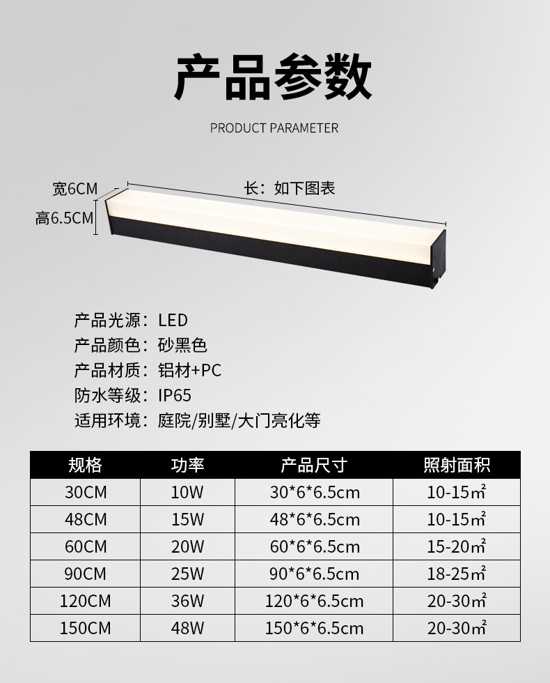 led长条壁灯现代极简庭院灯别墅大门口酒店走廊阳台户外防水壁灯