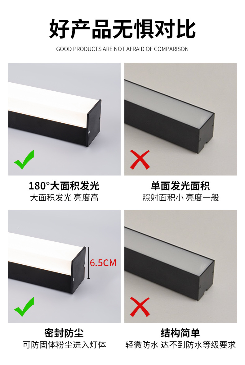 阳光房长条灯客厅主卧走廊灯酒店庭院阳台屋檐灯三面发光长条壁灯