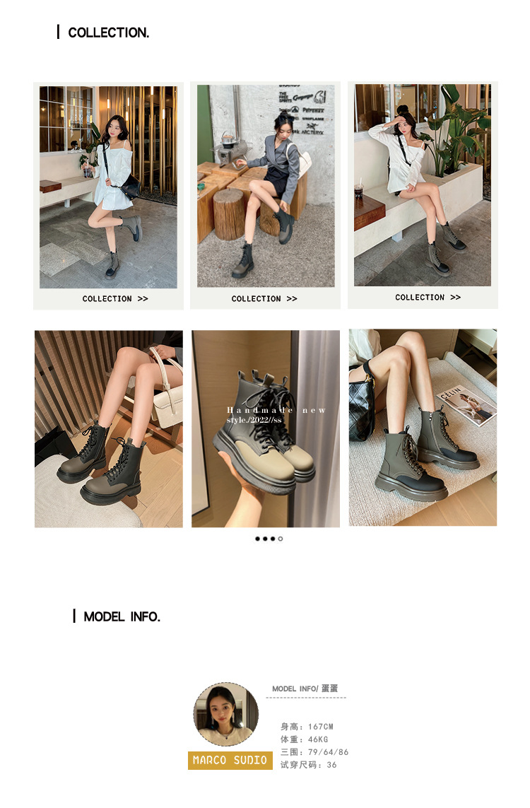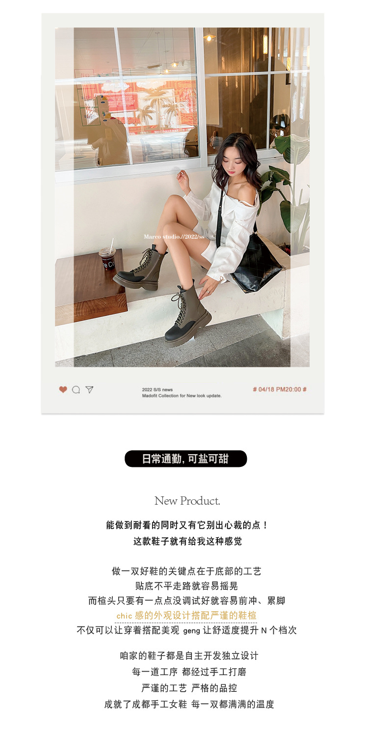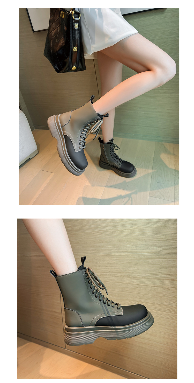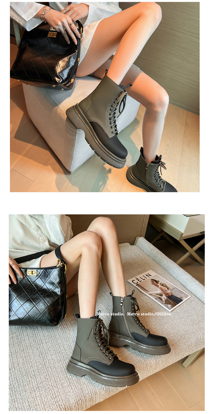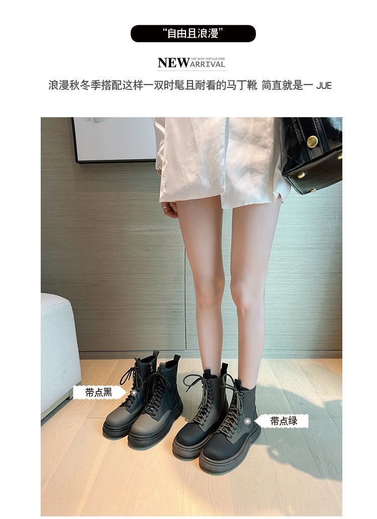 가을과 겨울 컬러 매칭 마틴 부츠 여성 정품 가죽 두꺼운 밑창 영국 스타일 짧은 부츠 레이스 업 스키니 다리 스커트 오토바이 부츠 얇은 단층 부츠스토어 가기