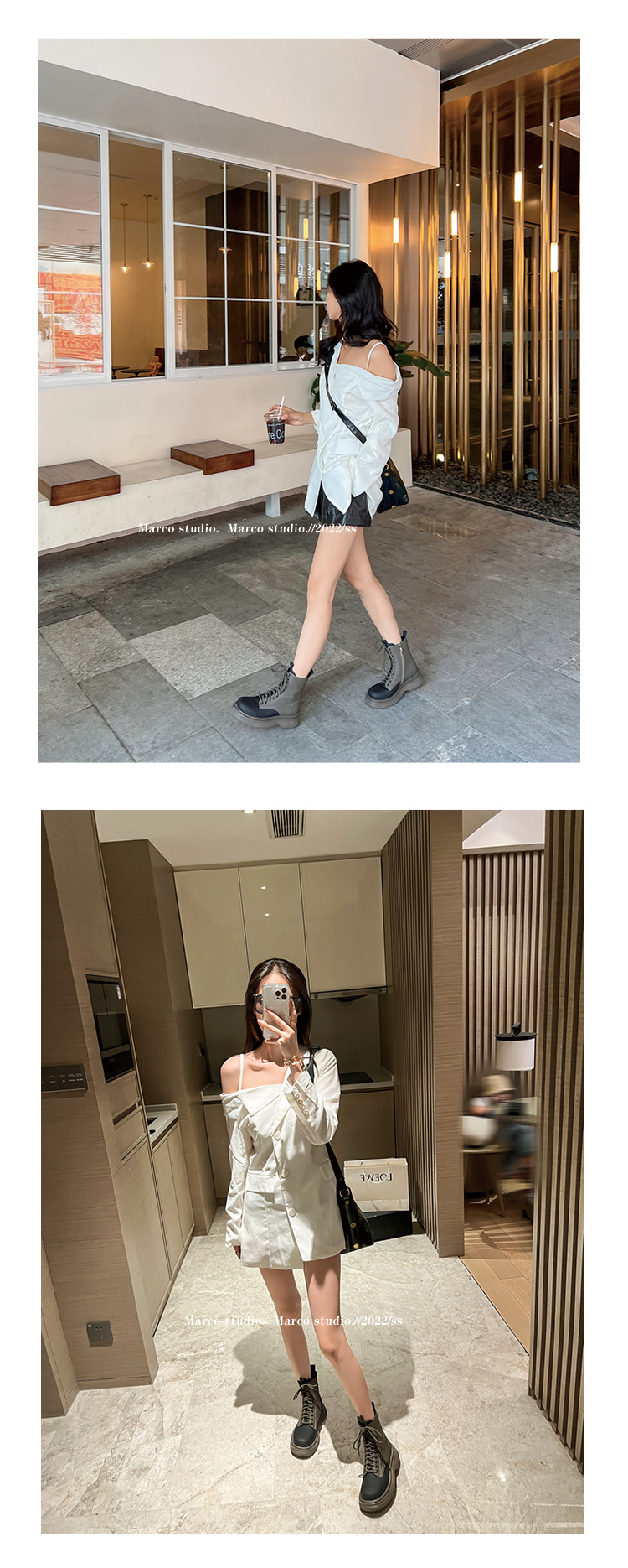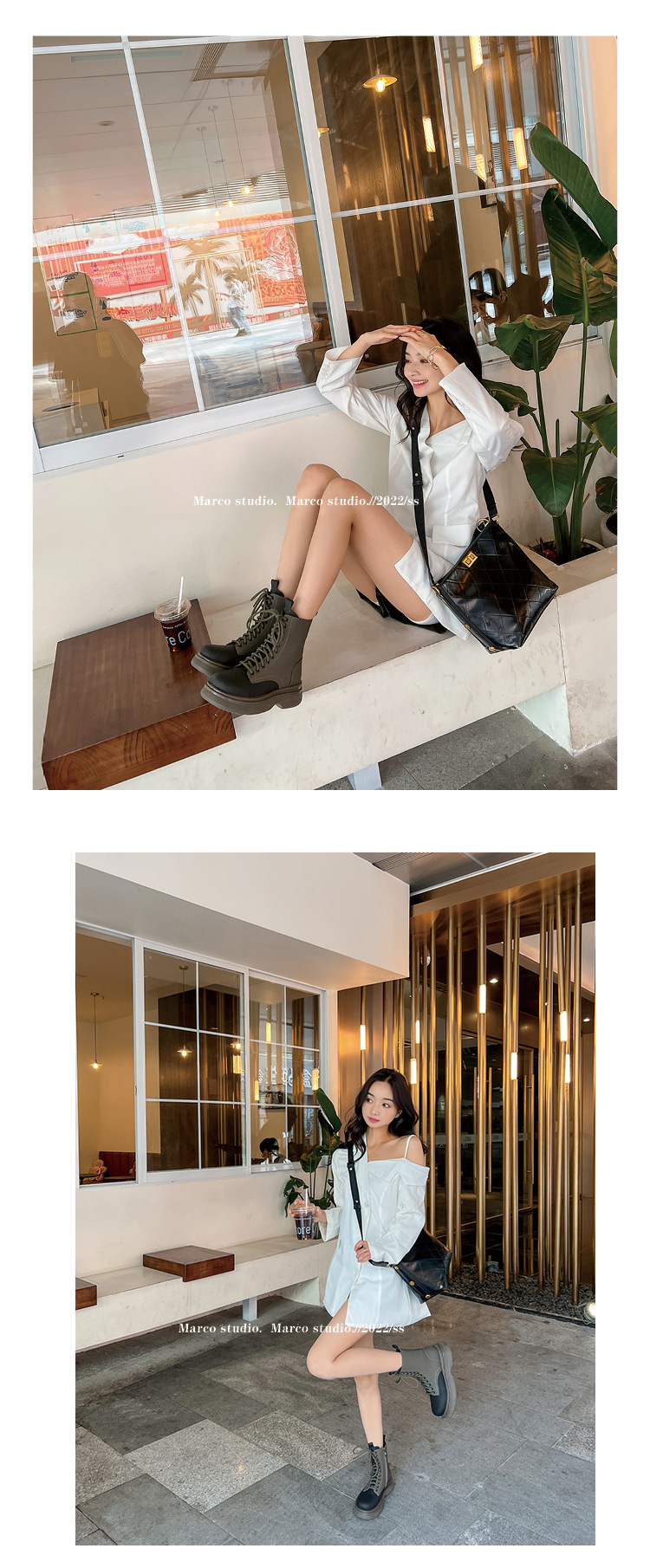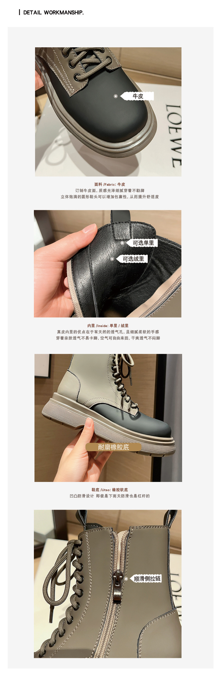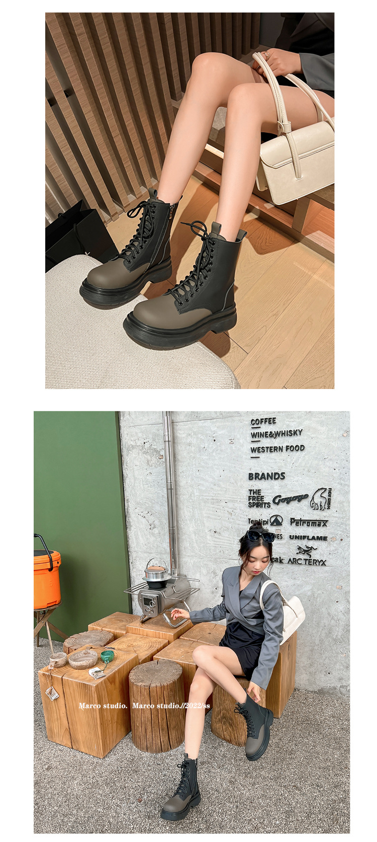 가을과 겨울 컬러 매칭 마틴 부츠 여성 정품 가죽 두꺼운 밑창 영국 스타일 짧은 부츠 레이스 업 스키니 다리 스커트 오토바이 부츠 얇은 단층 부츠스토어 가기