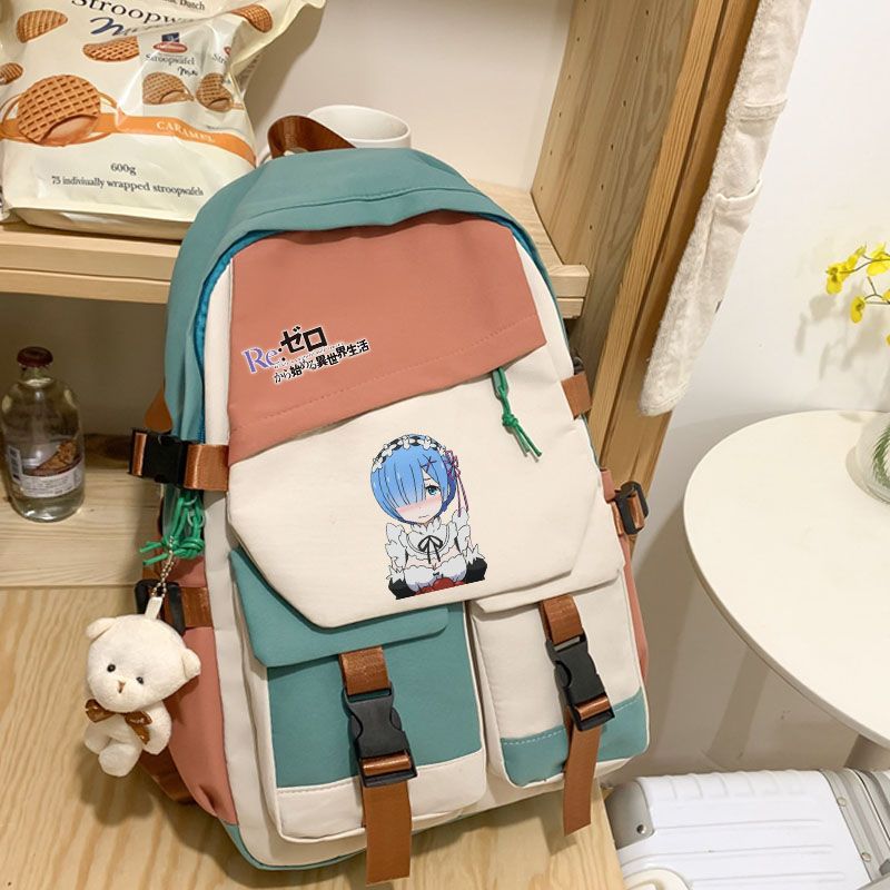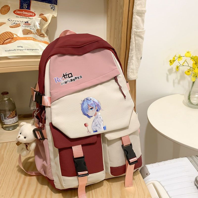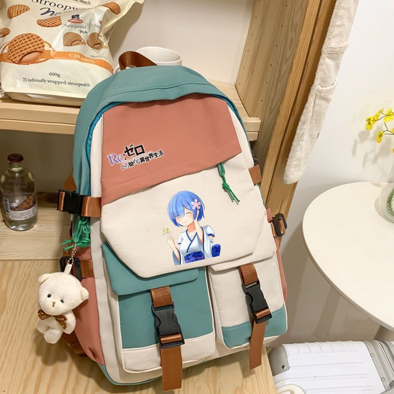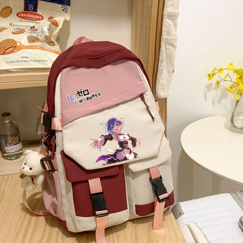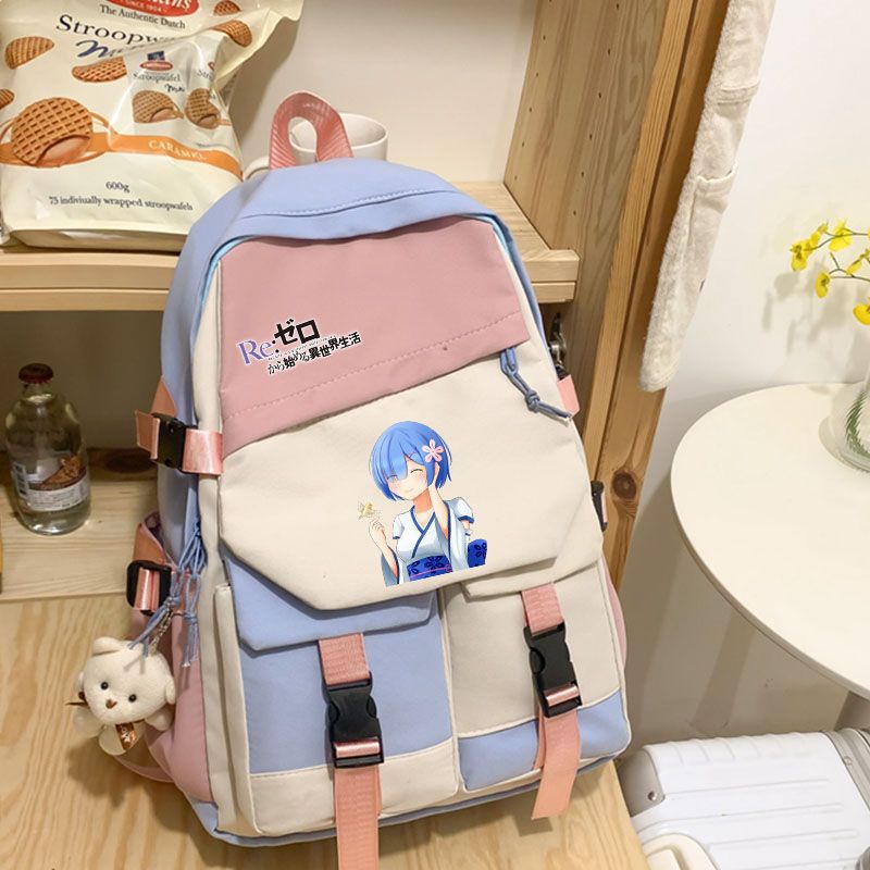다른 세계 생활 학교 가방 처음부터 REM Emiliya 배낭 중학교 초등학생을위한 대용량스토어 가기