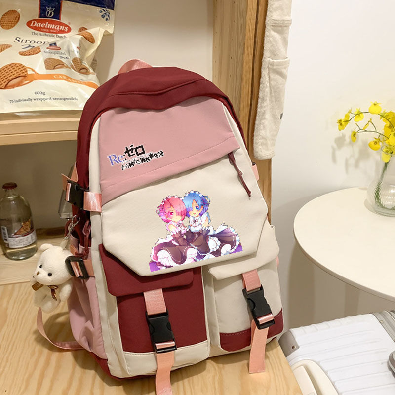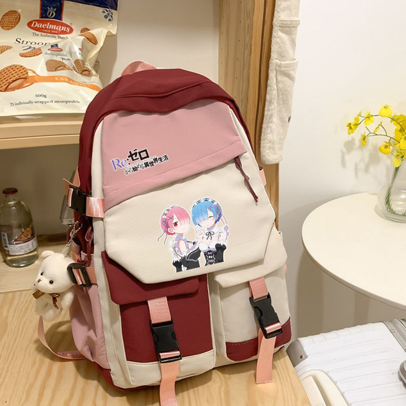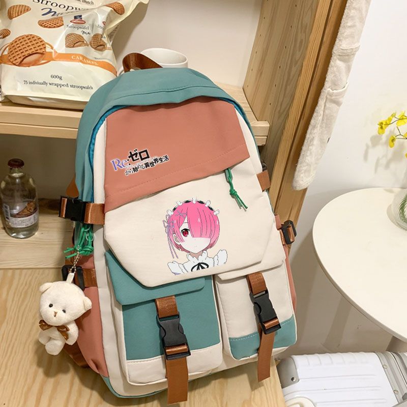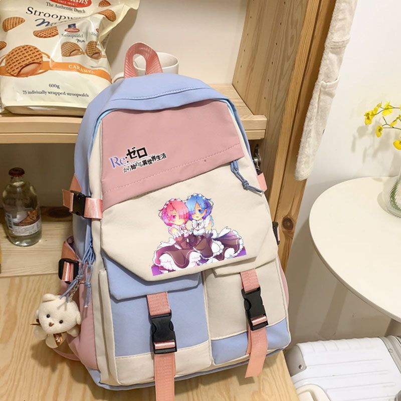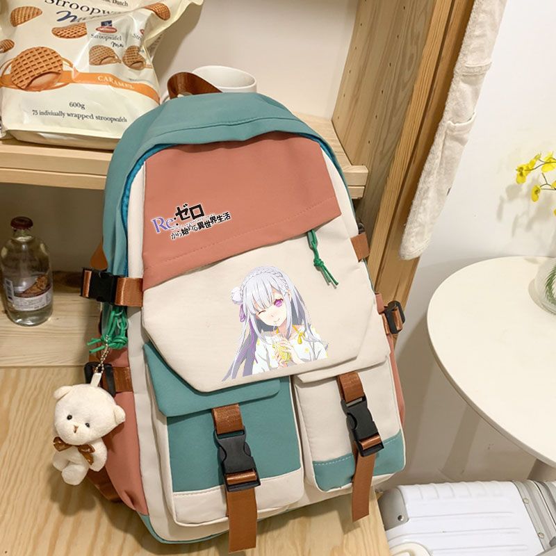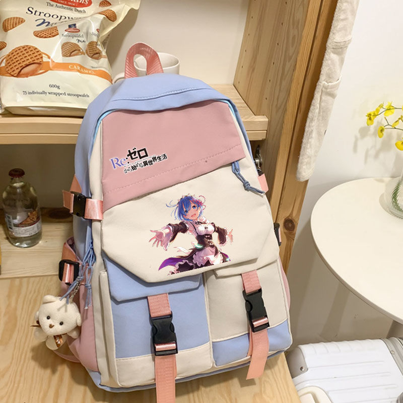 다른 세계 생활 학교 가방 처음부터 REM Emiliya 배낭 중학교 초등학생을위한 대용량스토어 가기