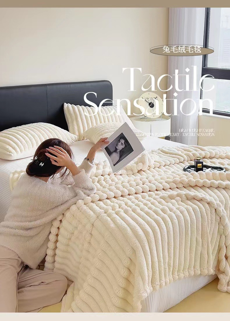 드로우 스트립 토끼 봉제 다기능 담요 가을과 겨울 높은 무게 플란넬 사무실 담요 소파 국경 머리스토어 가기
