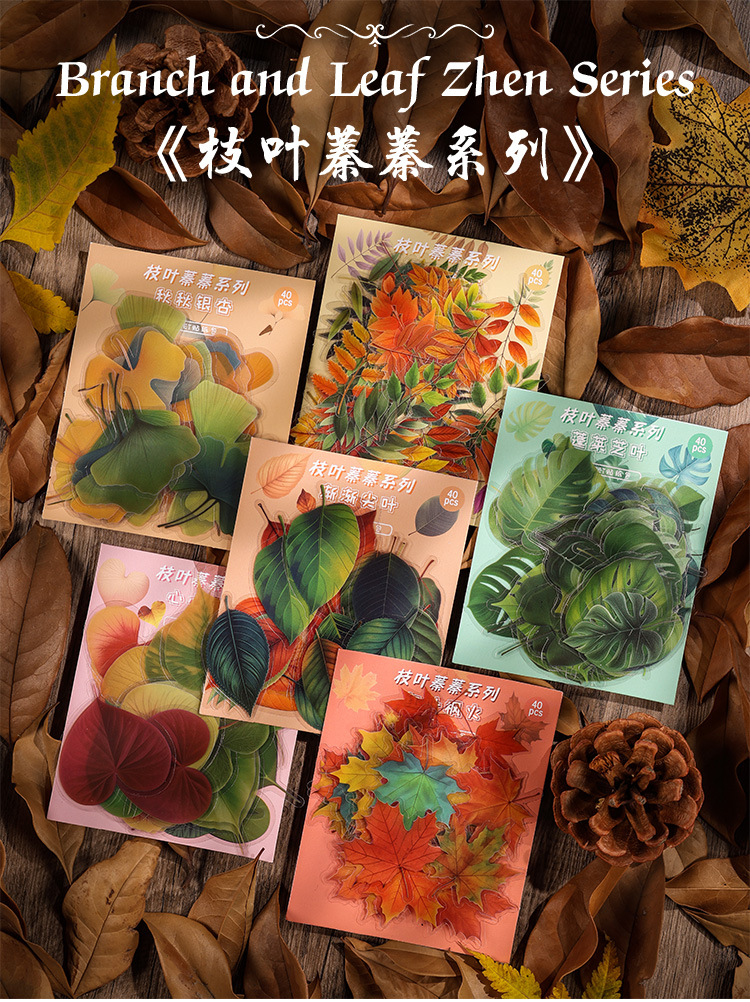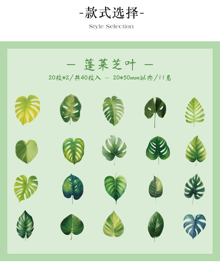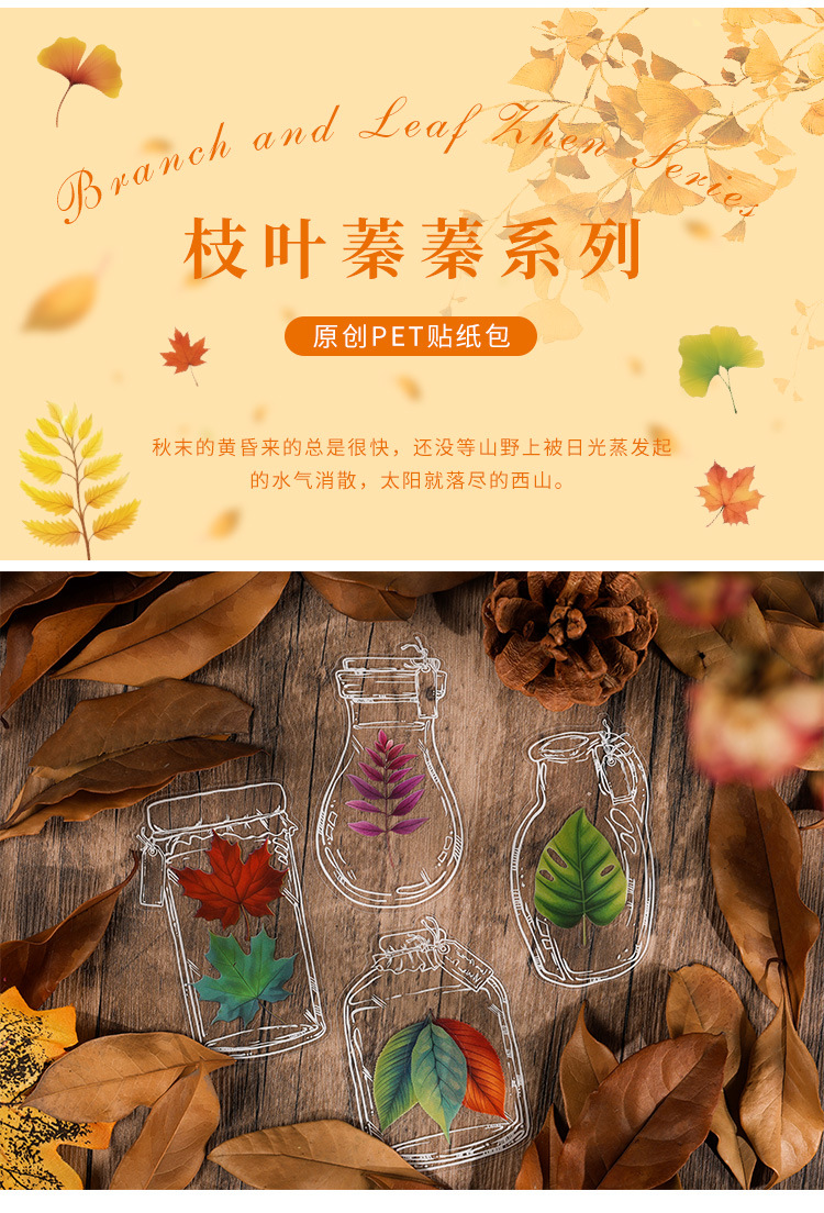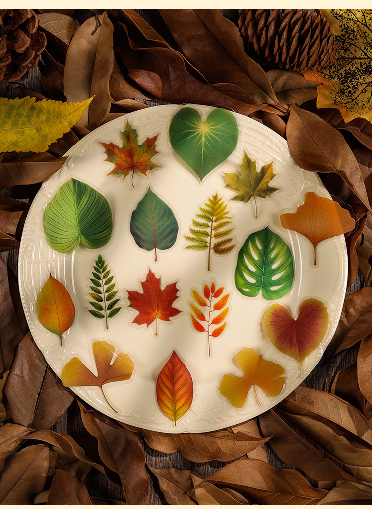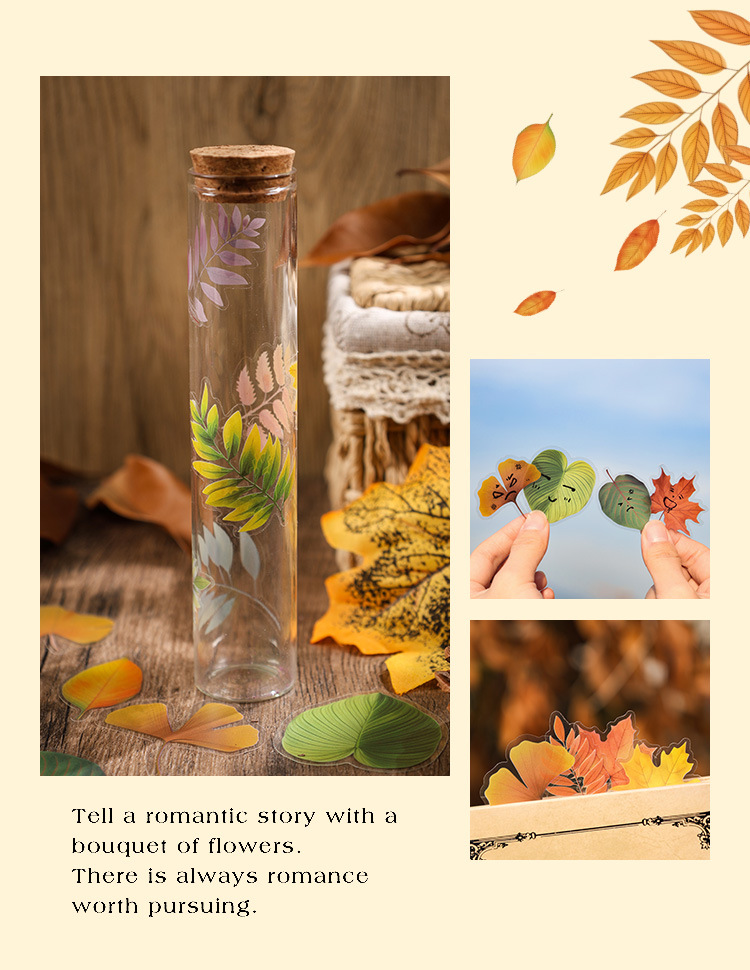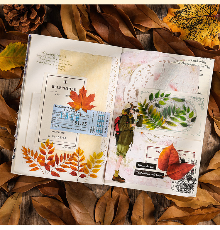 나뭇잎과 잎 스티커 가방 복고풍 예술적 잎 저널 pvc 방수 스티커 diy 콜라주 소재 스티커