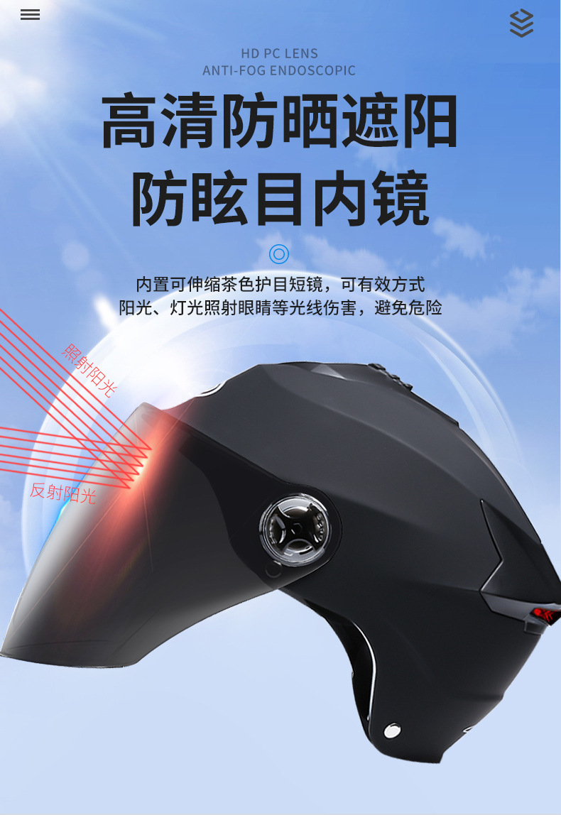 충전식 LED 전기 자전거 헬멧, 오토바이 헬멧, 전기 자전거 안전모, 여름용 자외선 차단 반헬멧, 통기성스토어 가기