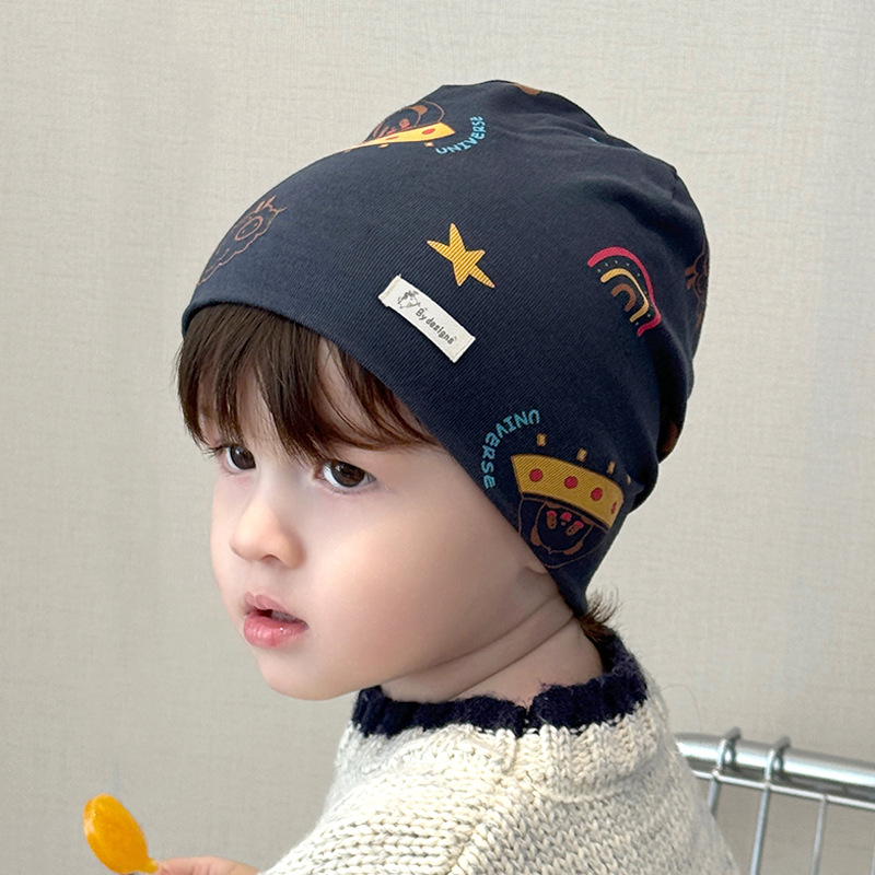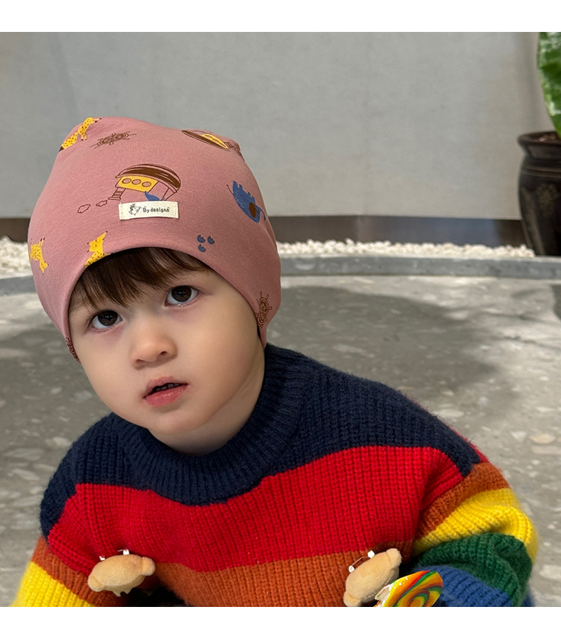 새로운면 어린이 더블 레이어 모자 아기 만화 모자 가을과 겨울 방풍 따뜻한 귀 보호 캡 소년 소녀