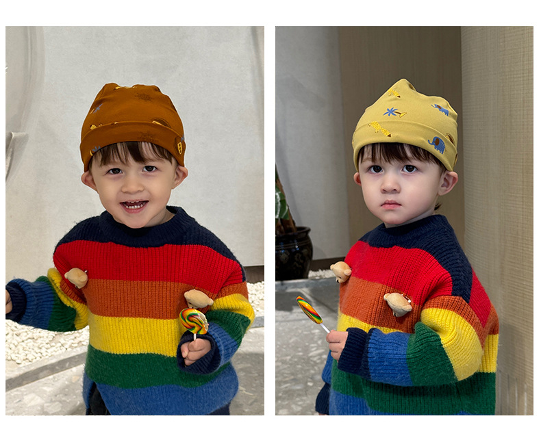 새로운면 어린이 더블 레이어 모자 아기 만화 모자 가을과 겨울 방풍 따뜻한 귀 보호 캡 소년 소녀스토어 가기