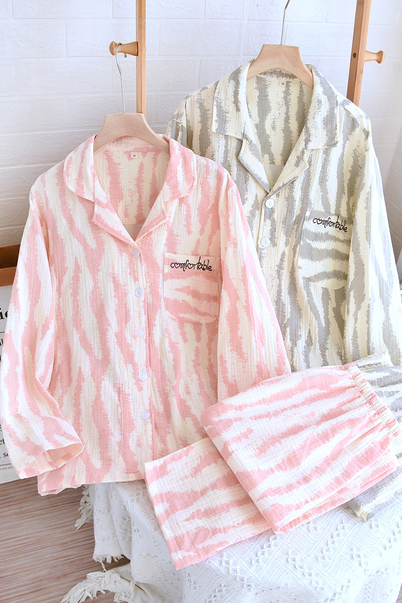 봄과 가을 얇은 커플 잠옷 세트 여성면 거즈 여름 긴 소매 플러스 사이즈 캐주얼 홈 착용 공장 스트레이트 헤어스토어 가기
